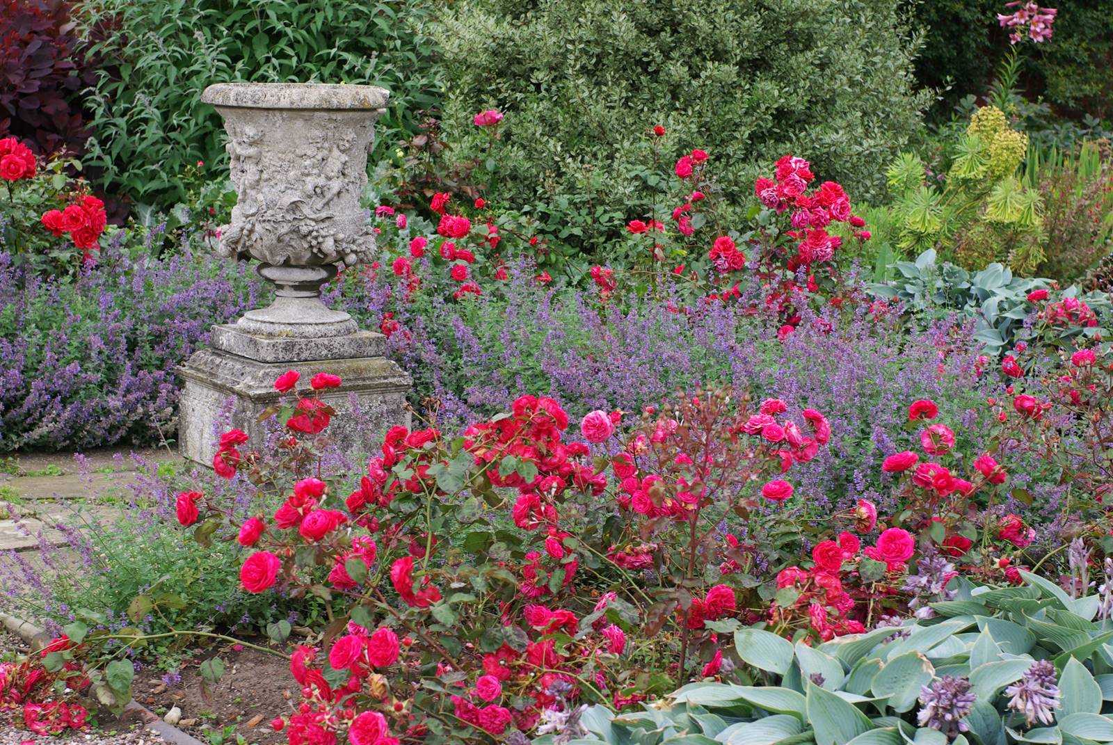 On retrouve des plantes vivaces dans un grand jardin enclos de murs, mariées à des roses et des buissons. Chaque massif témoigne d’une parfaite maîtrise de l’art des jardins et charme le regard par le choix de ses végétaux et l’harmonie de ses couleurs.