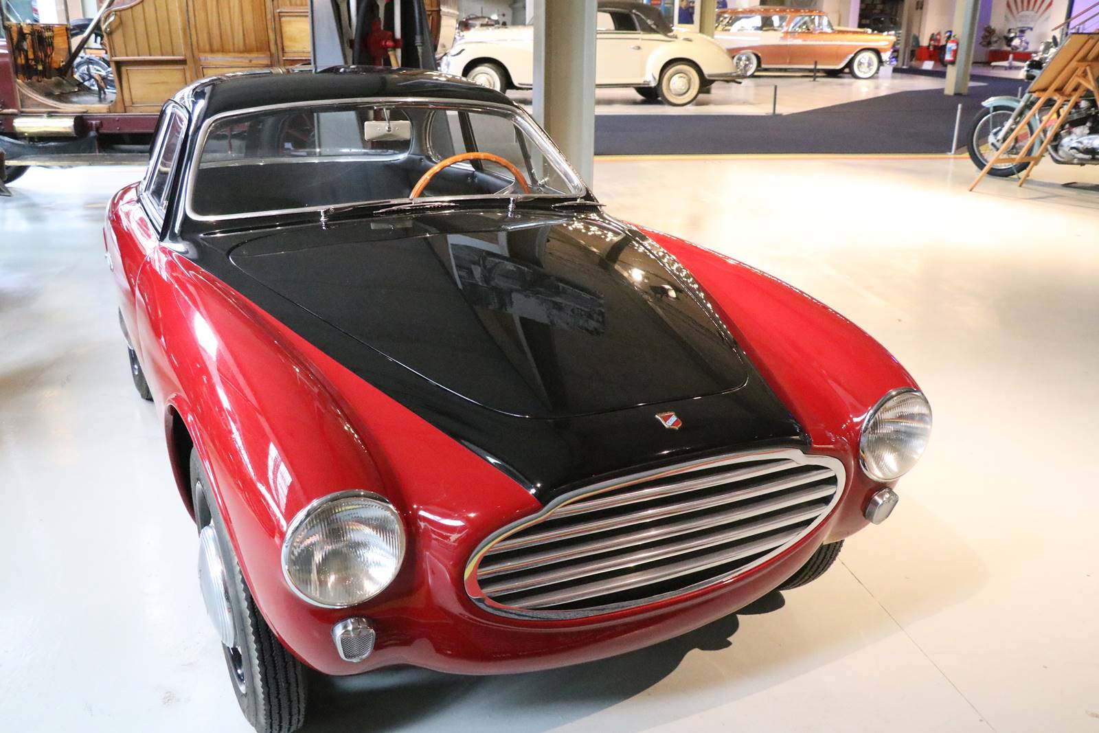 1954 Moreti Grand Sport Berlinetta. Resesmblant à une petite Ferrari 212, ce modèle deux places a remporté d’importants succès en compétition des deux côtés de l’Atlantique.