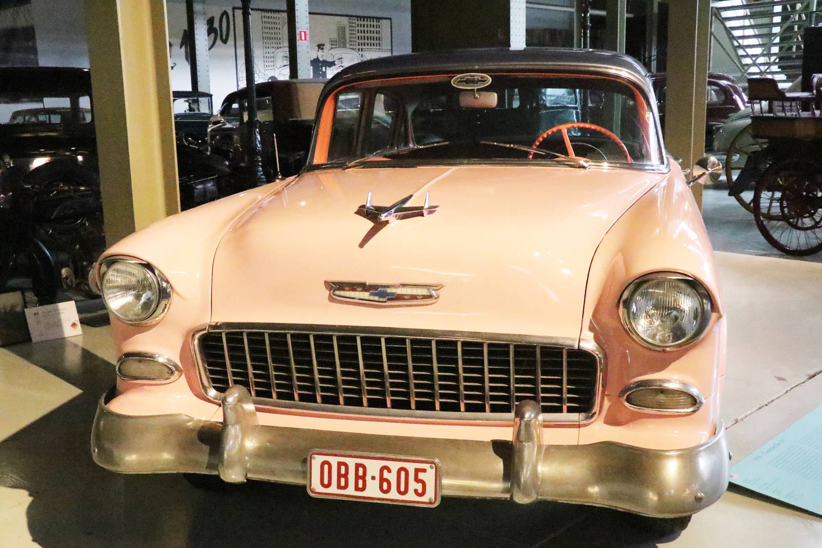 1955 Chevrolet Bel Air. Construit par General Motors sous la marque Chevrolet, le modèle Bel Air est équipé d’un moteur à injection. Elle existe en berline, cabriolet, coupé ou break.