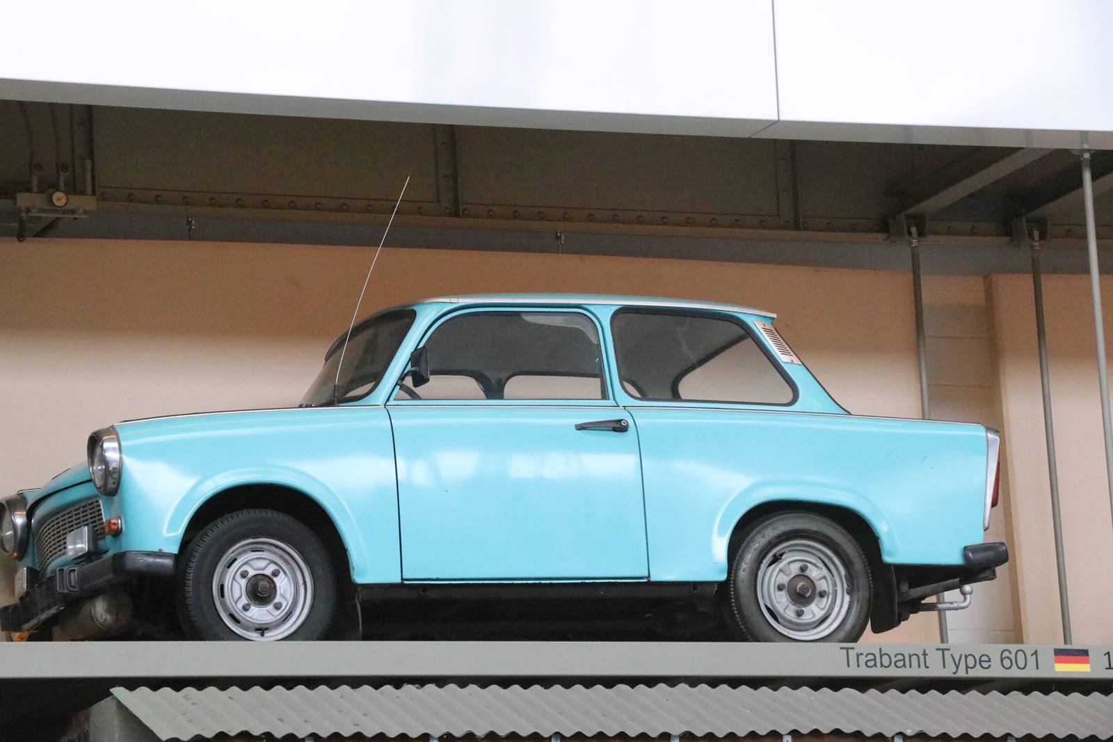 1964 Trabant Type 601. Fabriquée en RDA entre 1964 et 1990, la Trabant est une voiture culte en Allemagne. Ses lignes évoquent un peu une Peugeot 404.