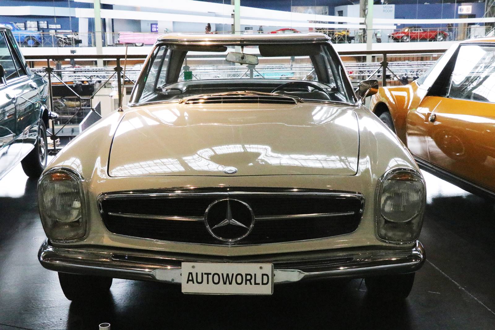 1964 Mercedes 230 SL. Surnommé Pagode en raison de la forme légèrement concave de son Hard-Top, ce modèle a été créé par le français Paul Bracq. Il est resté en production jusqu’en 1971.
