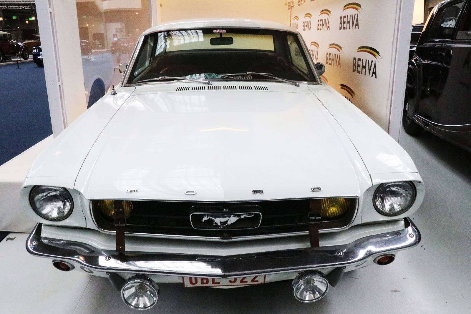 1965 Ford Mustang. Réplique fidèle du coupé 4 places couleur Wimbledon White utilisé lors du rallye de Monte-Carlo dans le film de Claude Lelouch ‘Un homme et une femme’ sorti en 1966.