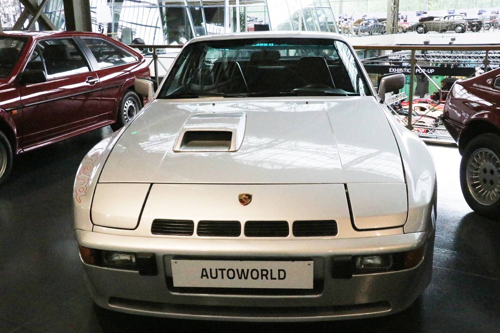 1980 Porsche 924 Carrera GT. Lancé en 1976, ce modèle fut un grand succès commercial. Il évoque l’accident tragique en 1985 du chanteur Sacha Distel et Chantal Nobel sur la N7.