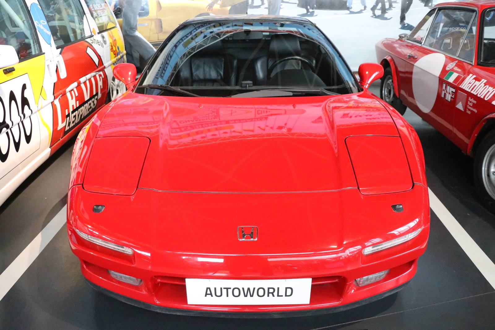 1990 Honda NSX. Construite avec l’expertie F1 de Honda et mise au point par Ayrton Senna, elle présente une cabine à l’avant inspirée d’un avion de chasse.