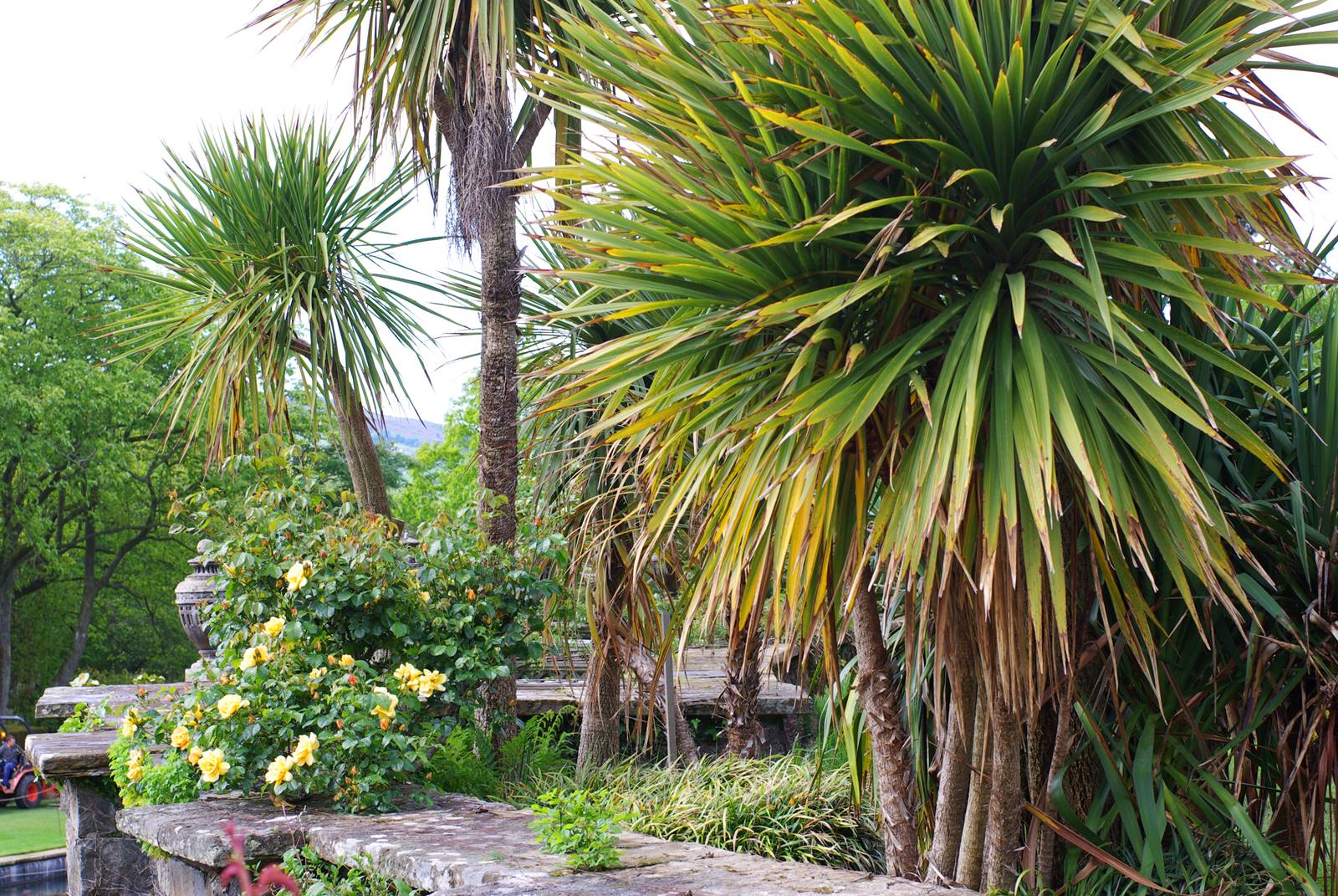 Epousant le flanc de la colline, les cinq terrasses de style italien ont été réalisées à partir de 1904. Elles sont l’oeuvre d’Henry MacLaren et sa mère Laura, Lady Aberconway. Volées de marches et dallages en matériaux locaux, pergolas à croisillons couvertes de glycines et de roses grimpantes, fontaine monumentale, roseraie, bassins aux nénuphars sont autant de salons de jardins inspirés par le mouvement Arts and Crafts. Ces scènes offrent de larges vues sur les plateaux gallois.
