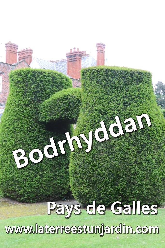 Les jardins de Bodrhyddan s’étendent sur près de 5 hectares. Bordant le manoir, un jardin formel entouré d’un ha-ha se prolonge par de vastes pelouses et prairies. Le parc paysager est peuplé d’étangs et de sentiers qui mènent à un pavillon d’été. Il y a aussi un vieux puits, une glacière et un ancien potager clos de mur aujourd’hui peuplé d’arbustes d’ornement. (voir mon reportage sur le Ha-ha)
