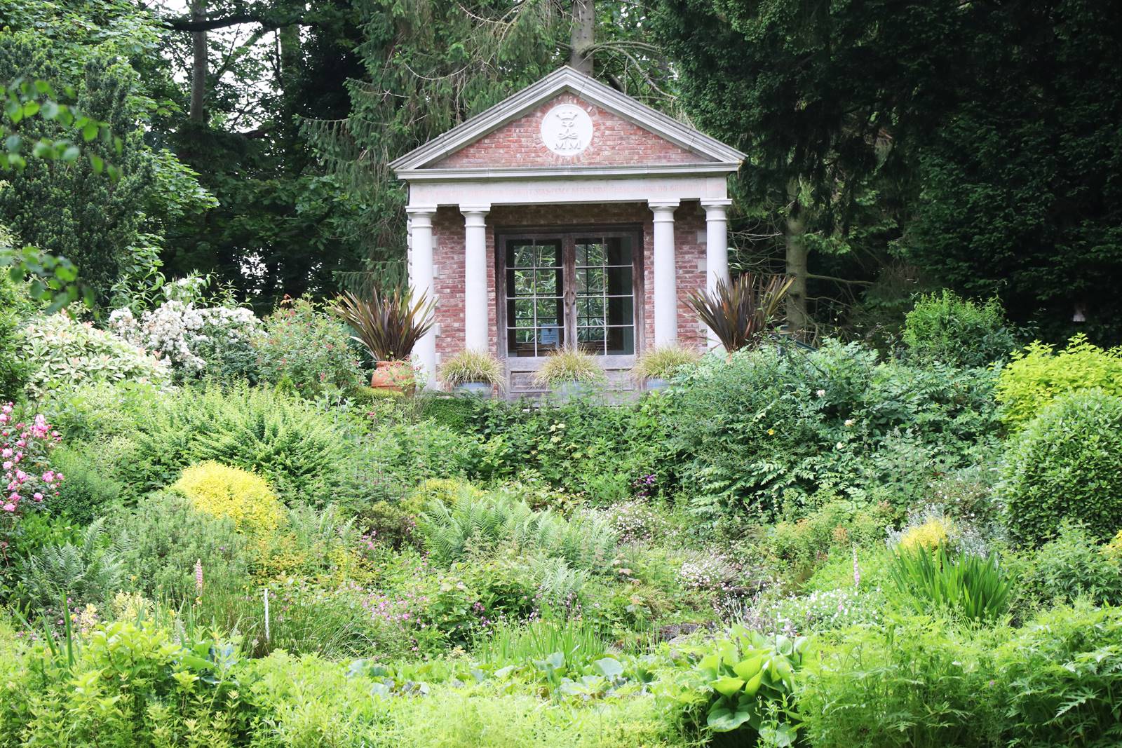 Plusieurs étangs agrémentent la promenade de Bodrhyddan bordés de Gunnera manicata et d’Iris sibirica. Un petit pavillon d’été domine un étang. Son plan à colonnade est inspiré d’un temple de Petra admiré en avril 2000 lors d’un voyage en Jordanie. Il est bordé d’un parterre d’arbustes d’ornement, de rosiers et de plantes vivaces.