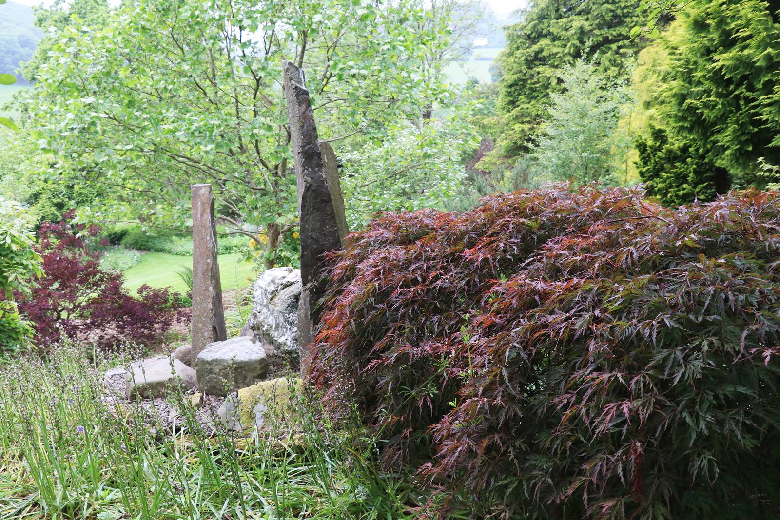 Le jardin de Cae Hir est peuplé d’une collection d’arbres qui structure et encadre les différentes scènes. On admire de beaux specimens âgé de 35 ans, Ulmus minor ‘Louis van Houtte’ au feuillage doré, Sorbus khumbuensis aux fruits pourpres virant au blanc, Acer platanoides ‘Drummondii’ aux feuilles découpées marginées de crème, Acer davidii ‘Serpentine’ à l’écorce striée de blanc.