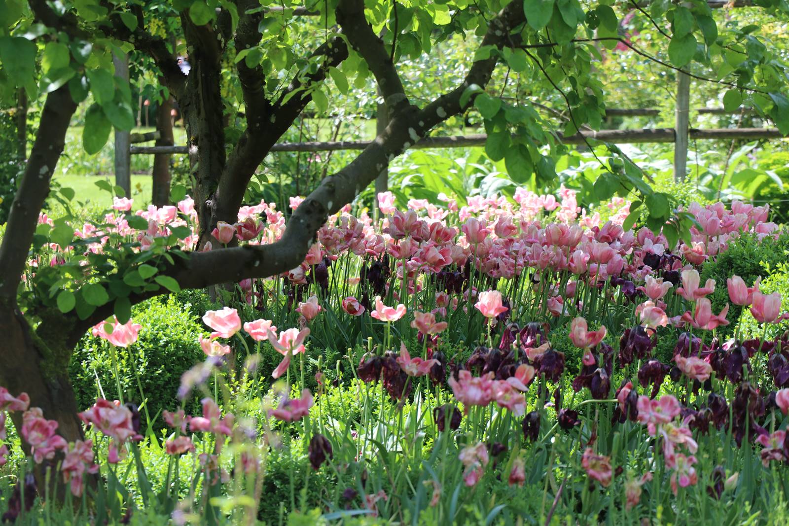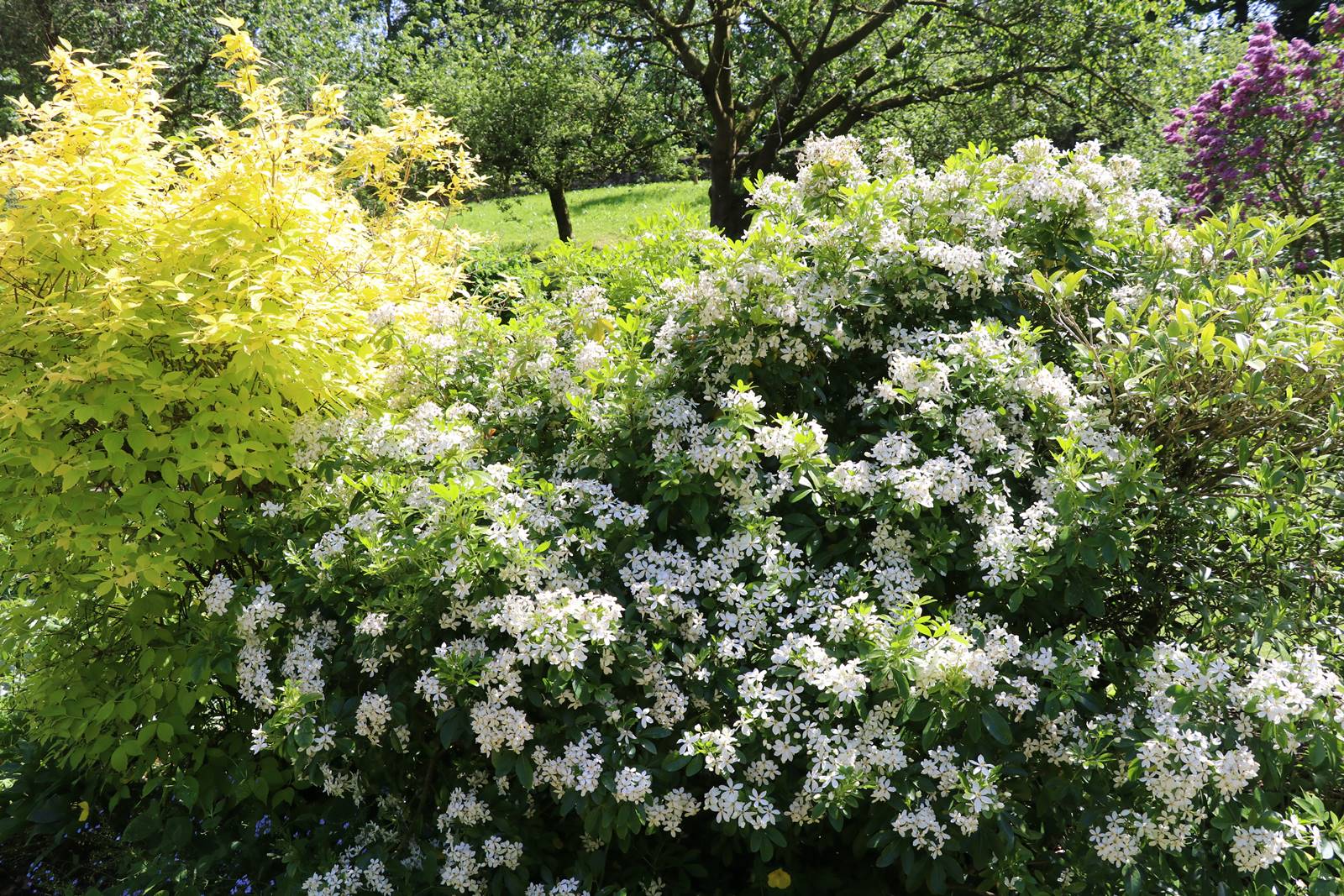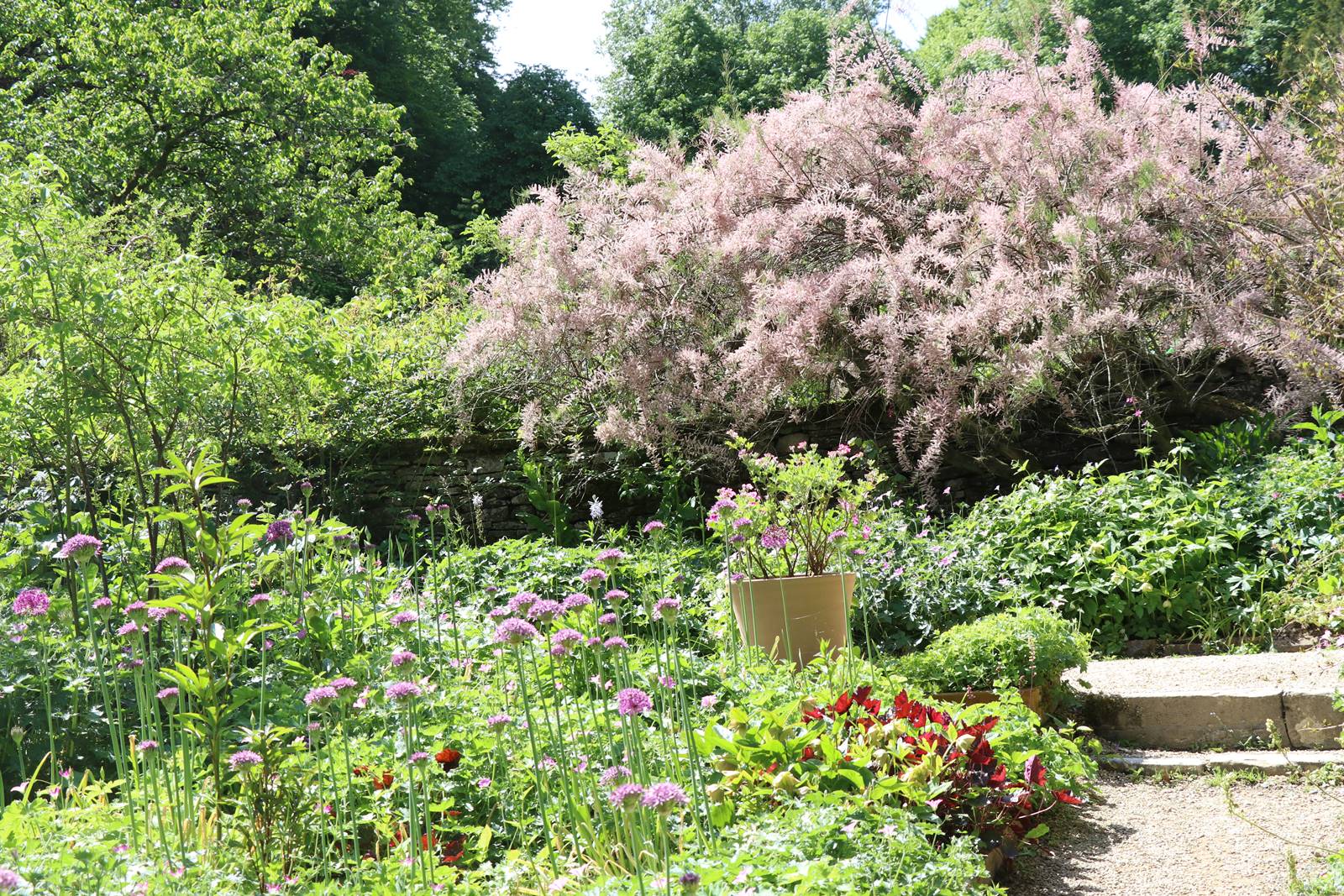 Il est traversé par une arche de Laburnum couverte de grappes jaunes comme une pluie d’or en ce mois de mai.