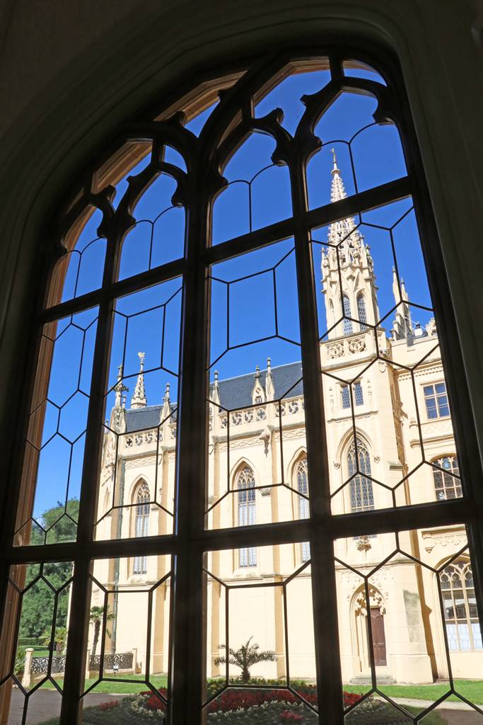 La forteresse gothique de Lednice fit place au 16e siècle à une villa Renaissance qui fut elle-même transformée en un palais de style baroque au 17e siècle. Le pouvoir, la fortune et l’imagination des Liechtenstein n’ayant pas de limite, le château de Lednice fut à nouveau reconstruit lorsque le prince Aloïs II de Liechtenstein (1796-1858) décida au milieu du 18e siècle que Vienne n’était pas propice aux réceptions en été. A la demande du régent de la maison princière, l’architecte Georg Wingelmüller donna au château de Lednice entre 1846 et 1858 l’allure d’un monumental manoir anglais de style néo-gothique Tudor avec une façade émaillée de tourelles, de créneaux, de balcons, de statues et de blasons.