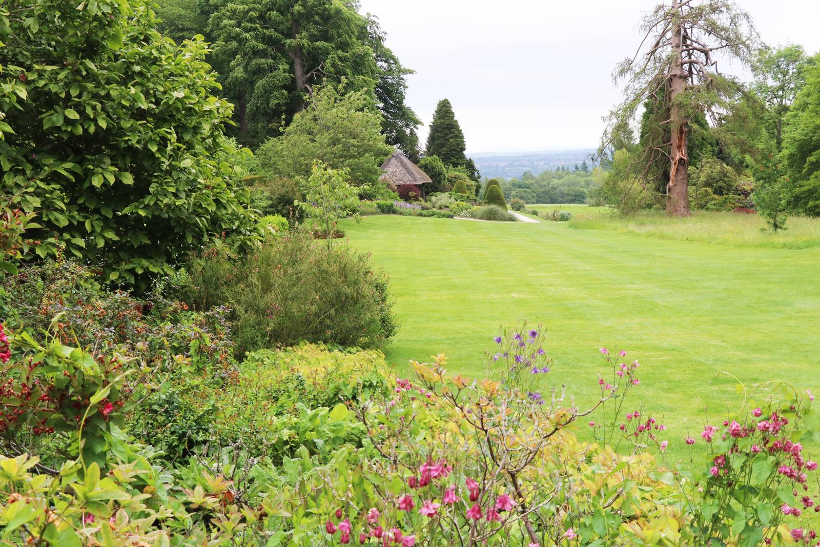 Lady Margaret crée une roseraie et aménage une bordure fleurie avec une multitude d’arbustes d’ornement, de rosiers et de plantes vivaces, iris, pivoines, hostas et anémones du Japon.