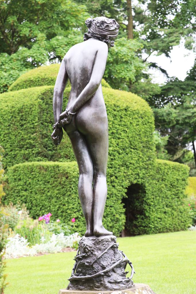 Deux nymphes en bronze d’Andrea Carlo Lucchesi accueillent le promeneur à l’entrée du parc de Chirk. Le parc de 2 hectares fut transformé en style paysager dans les années 1760 à 1770 par l’architecte paysagiste William Emes, disciple de Lancelot ‘Capability’ Brown, pour Richard Myddelton. Traversé par le sentier du mur d’Offa, il déroule de vastes pelouses, des zones forestières, un ha-ha (saut de loup) et des prairies de fleurs sauvages. (voir mon reportage sur le ha-ha)