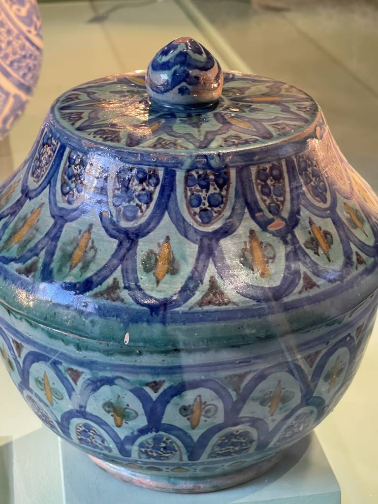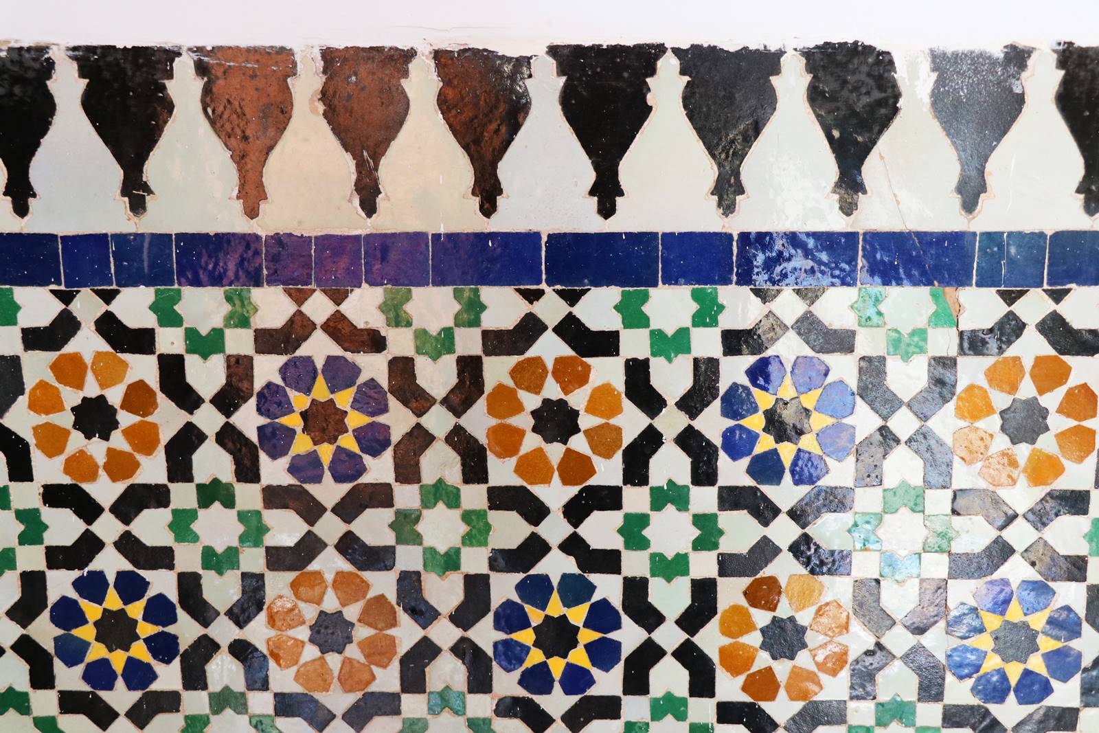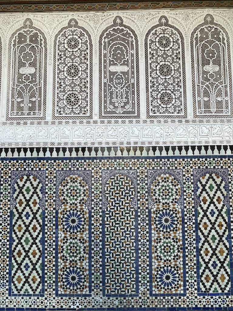 Dès l’époque médiévale, les artisans marocains on développé des techniques sophistiquées pour créer des carreaux et des marqueteries en faïence. Connues sous le nom de zellige, ces pièces de céramique émaillée étaient minutieusement assemblée pour former des motifs géométriques, des arabesques ou encore des inscriptions calligraphiques.