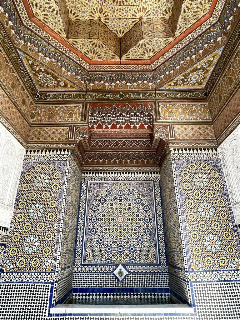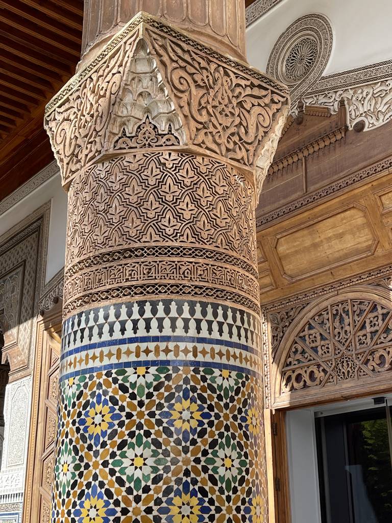 Les plafonds en cèdre sculpté, les portes et les fenêtres ouvragées et les zelliges témoignent de la richesse et de la délicatesse des registres décoratifs au Maroc.