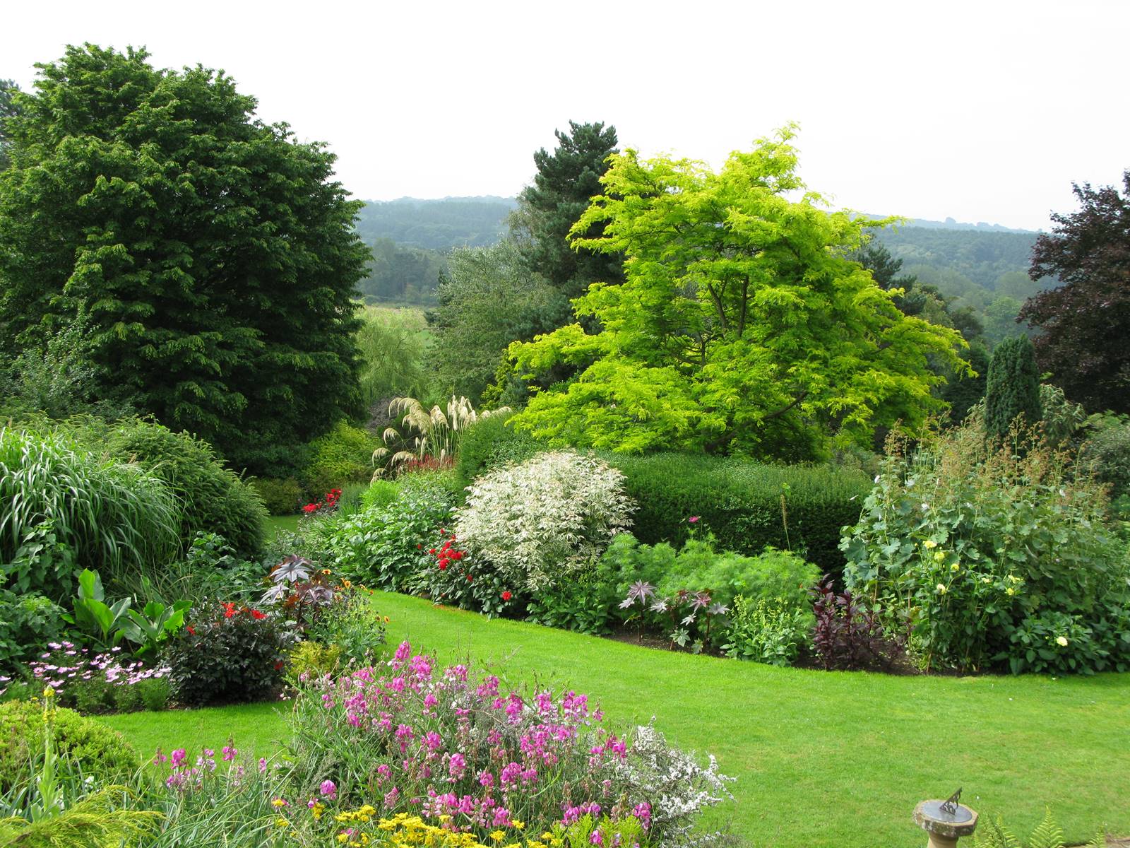 Une vaste collection de camélias, magnolias et de Cornus kousa a été ajoutée. Plus tard dans l’année, les mixed-borders de plantes herbacées et les roses ont leur moment de gloire avec des floraisons et des feuillages luxuriants. Elles sont suivies des couleurs d’automne des Hydrangea, Hamamelis, Liquidambar et Parrotia persica. Dans un sous-bois, on admire la sculpture d’un cerf, oeuvre de l’artiste londonien Ben Pantang.