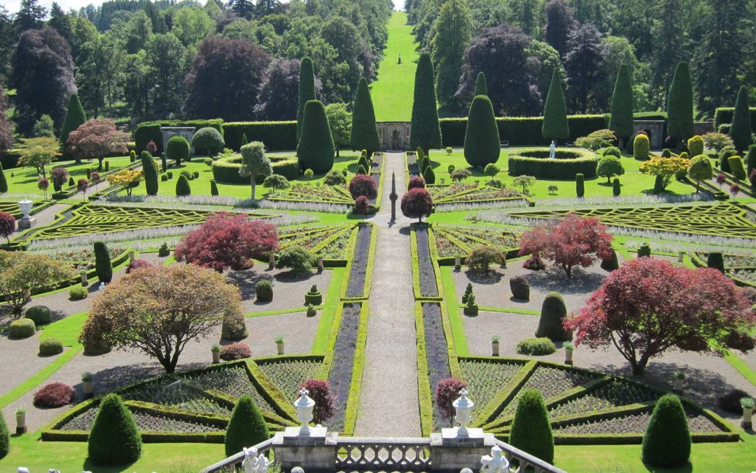 Spectaculaires, les jardins en terrasses du château de Drummond sont célèbres pour leurs parterres formels parmi les plus raffinés d’Ecosse.