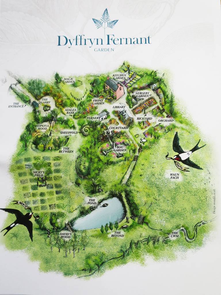La réussite du jardin de Dyffryn Fernant est qu’il fait écho à son environnement. Commençant par des plantations exubérantes et colorées autour de la maison, le jardin se fond progressivement dans la nature sauvage composée de collines rocheuses, de landes fleuries, de marais et de tourbières. Les fleurs sauvages sont les bienvenues dans ce jardin, estompant les frontières entre le paysage et les différentes parties du jardin.