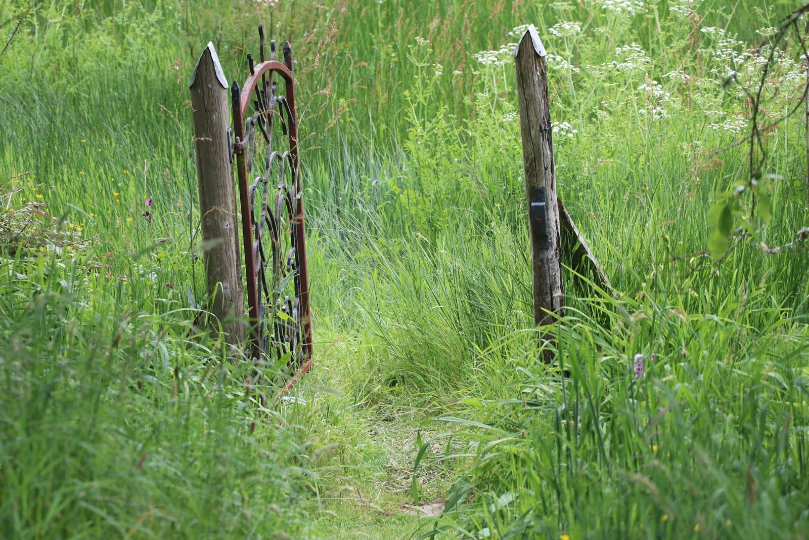 L’arrivée à Dyffryn Fernant est fleurie au printemps d’un massif d’azalées. On monte alors sur une terrasse qui surplombe la maison. Le Magic Garden est une prairie fleurie de pâturin des prés. Il donne une vue d’ensemble sur le jardin et le paysage environnant. C’est la mémoire d’un lieu, d’une histoire, d’une aventure humaine, un moment hors du temps qui laisse place au rêve et à l’évasion.