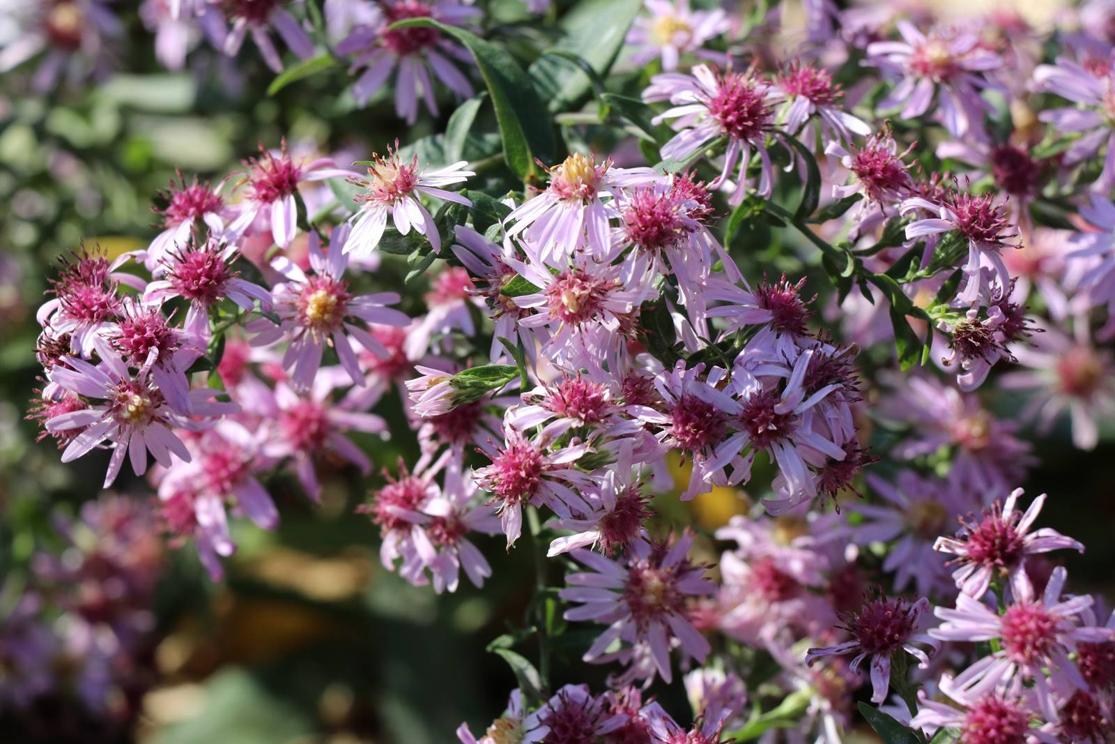 Les asters nous éblouissent en automne par l’éclat de leur floraison qui se décline dans toute la gamme des mauves, rouge magenta ou bleu lavande ou violets comme l’Aster novae-angliae ‘Jason’. Certaines comme l‘Aster frikartii fleurissent dès le mois de juillet. La floraison de l’Aster lateriflorus ‘Combe Fishacre’ est plus tardive avec une multitude de petites fleurs parme avec un coeur pourpré.