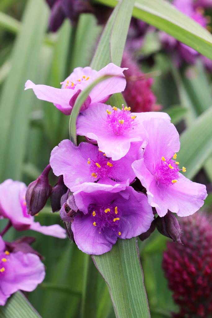 Si vous visitez de beaux jardins durant l’été, vous découvrirez des plantes moins connues comme l’orchis pourpre Dactylorhiza purpurella, une orchidée rose magenta, la sidalcée Sadilcea, cousine des mauves et qui ressemble à une rose trémière miniature, le Stachys grandiflora ‘Superba’, une plante couvre-sol à la floraison estivale pourpre violacé très vif ou l’éphémère de Virginie Tradescantia andersoniana à l’abondante floraison pourpre, bleue, rose ou blanche qui dure tout l’été. Vous pourrez aussi admirer le trèfle rouge Trifolium rubens aux inflorescences en grosses têtes allongées rose pourpré, une plante parfaitement rustique et peu exigeante.