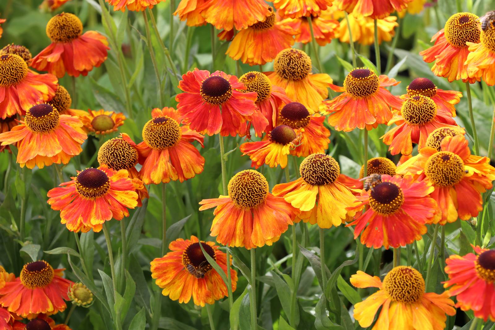 L’orange s’intensifie vers l’automne où il atteint sa maturité. La couleur orange du rudbeckia pourpre Echinacea purpurea, Rudbeckia hirta, Helenium et du chrysanthème Chrysanthemum évoque aussi la chaleur des flammes, les fleurs étant assombries et magnifiées par les tons obliques du soleil.