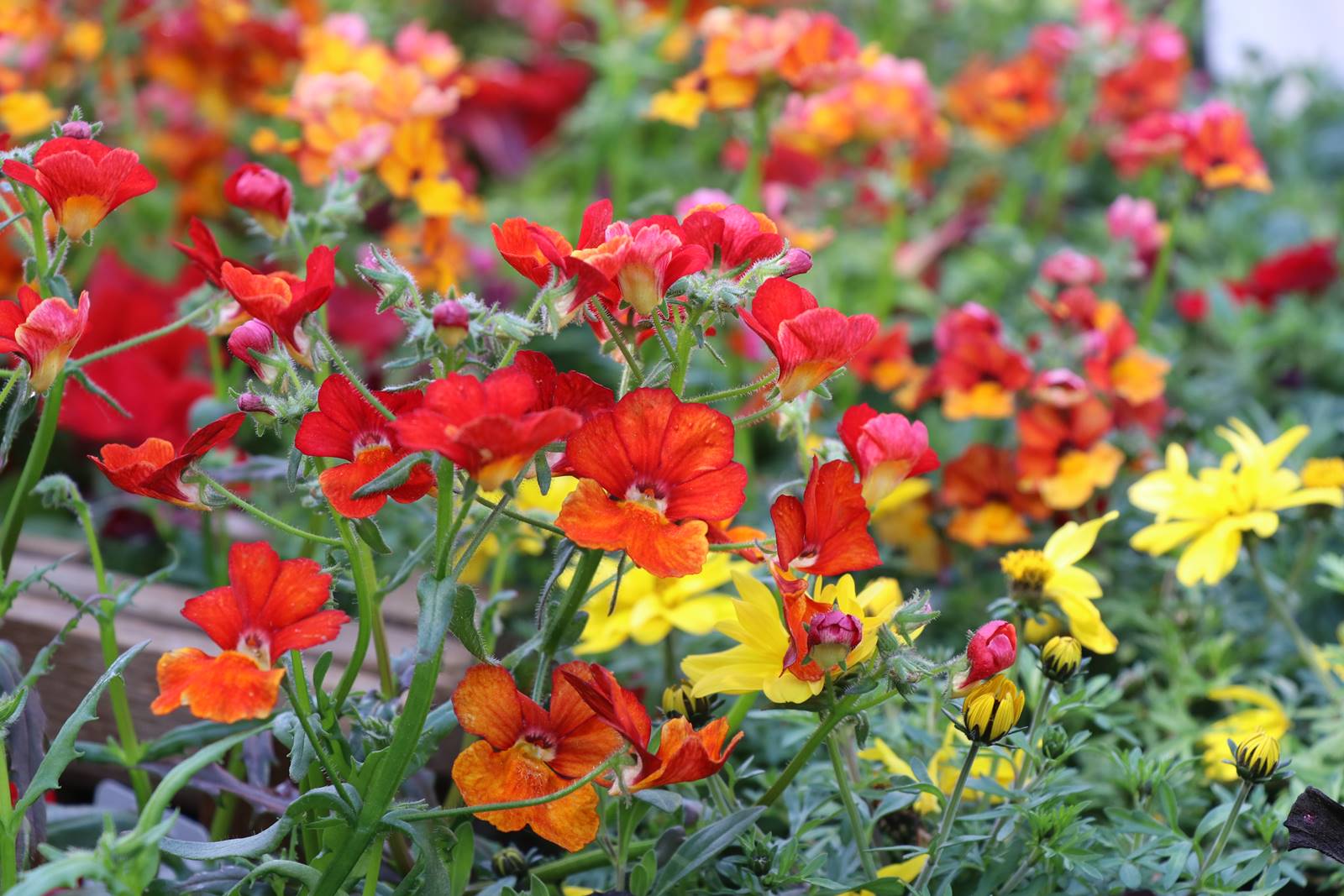 Les plantes saisonnières fleurissent les pots sur le balcon et la terrasse. A côté de l’incontournable Tagete, pensez à l’adorable capucine Tropaeolum majus, au Nemesia, au tournesol mexicain Tithonia rotundifolia et au géranium zonale Pelargonium dont les tons se déclinent souvent dans les tons rouge orangé.