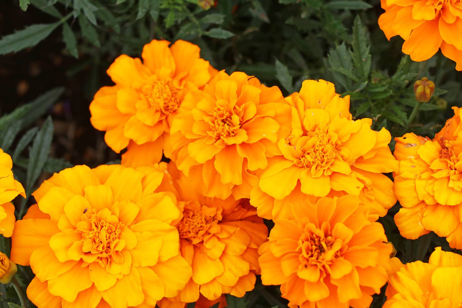 L’orange est une couleur secondaire qui se situe du côté chaud du cercle chromatique, entre le rouge plein de vitalité et le jaune lumineux. Dans un massif, l’orange est une couleur jubilatoire. Elle est moins violente que le rouge et moins présente que le jaune. Elle est visible et puissante mais à l’ombre elle vire au bronze avec des reflets légèrement marron.