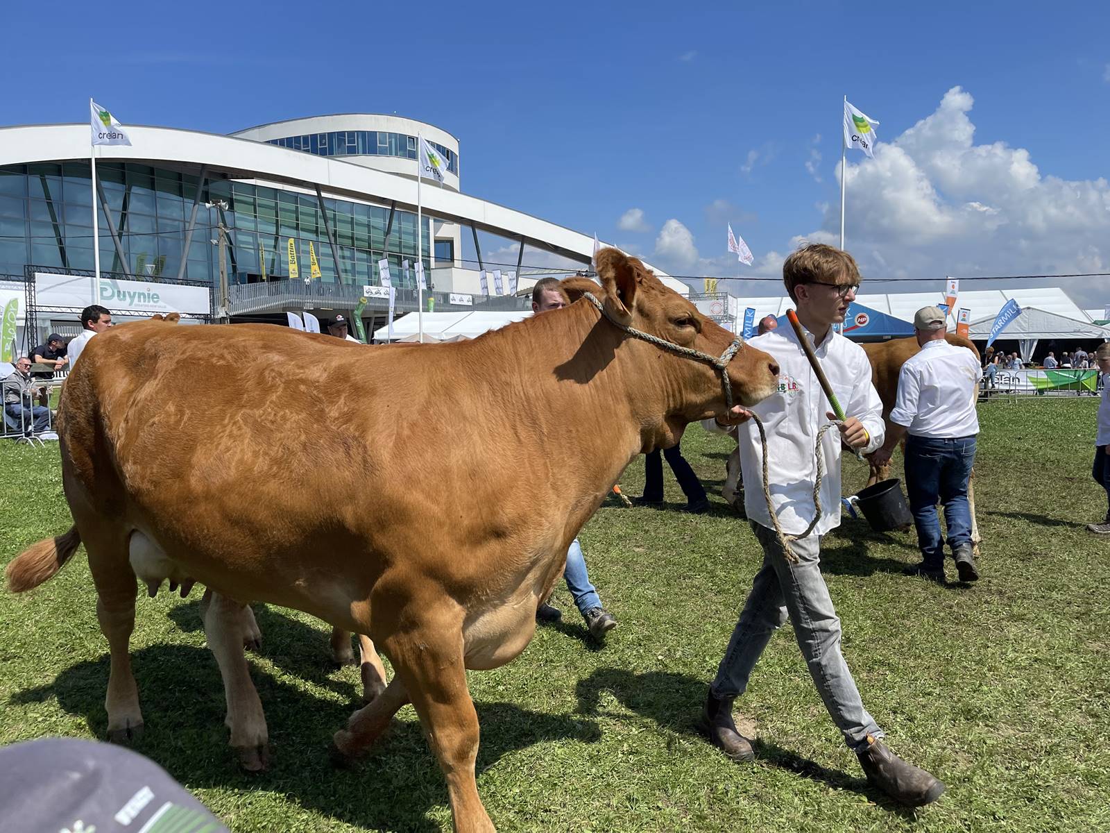 Couvert d’une toiture végétale, le bâtiment Libramont Exhibition & Congress inauguré en 2012 domine un site qui s’étend sur 30 hectares, dont cent mille mètres carrés de surfaces d’expositions en plein air. Les premiers concernés par la Foire de Libramont sont les agriculteurs. Depuis 2020, ils se sont regroupés en société coopérative qui fédère, accompagne et connecte entre eux les acteurs du monde rural. La foire accueille une douzaine de nationalités, France, Allemagne, Pays-Bas, Luxembourg, Suisse, Italie… L’occasion pour tous de découvrir les dernières nouveautés et les enjeux de la profession.