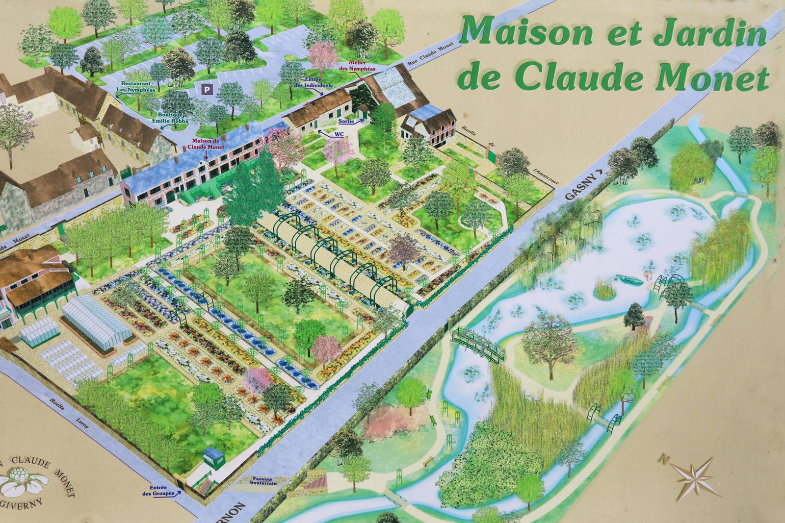 Maison et Jardins Claude Monet-Giverny, ouverture de la maison et des jardins d’avril à novembre. Boutique librairie dans le Grand Atelier des Nymphéas. Rue Claude Monet 84, Giverny, France, A13, sortie Vernon, à une heure de Paris et de Rouen. https://fondation-monet.com/