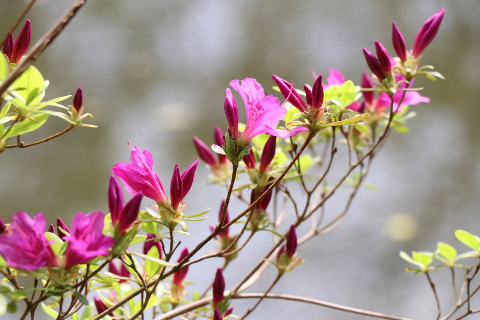 On accède à ce jardin d’eau par un souterrain. Le cadre est serein et lumineux. Les érables japonais et le hêtre pourpre centenaire commencent à arborer leur feuillage de printemps tandis qu’éclosent les fougères, les rhododendrons et les azalées japonaises qui s’épanouissent dans ce sol à tendance acide.