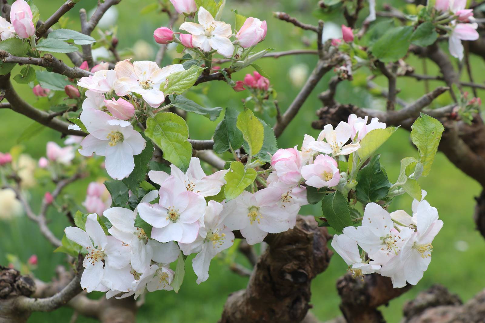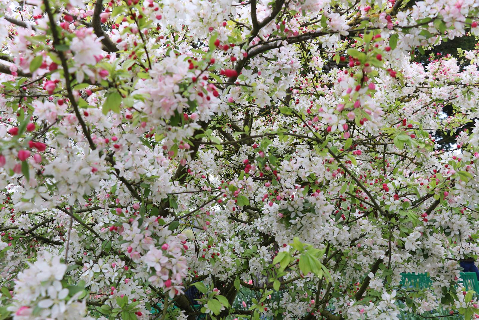 En ce mois d’avril au Jardin de Giverny, les pommiers, les cerisiers et les abricotiers rivalisent de floraisons nuageuses en un camaïeu de blanc rosé, comme une évocation nippone. Certains de ces Prunus ont été offerts en 1990 par l’Ambassadeur du Japon.