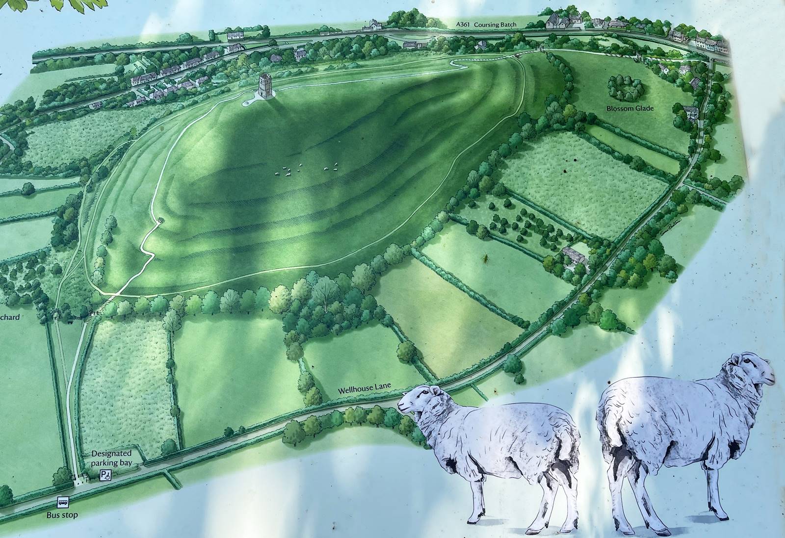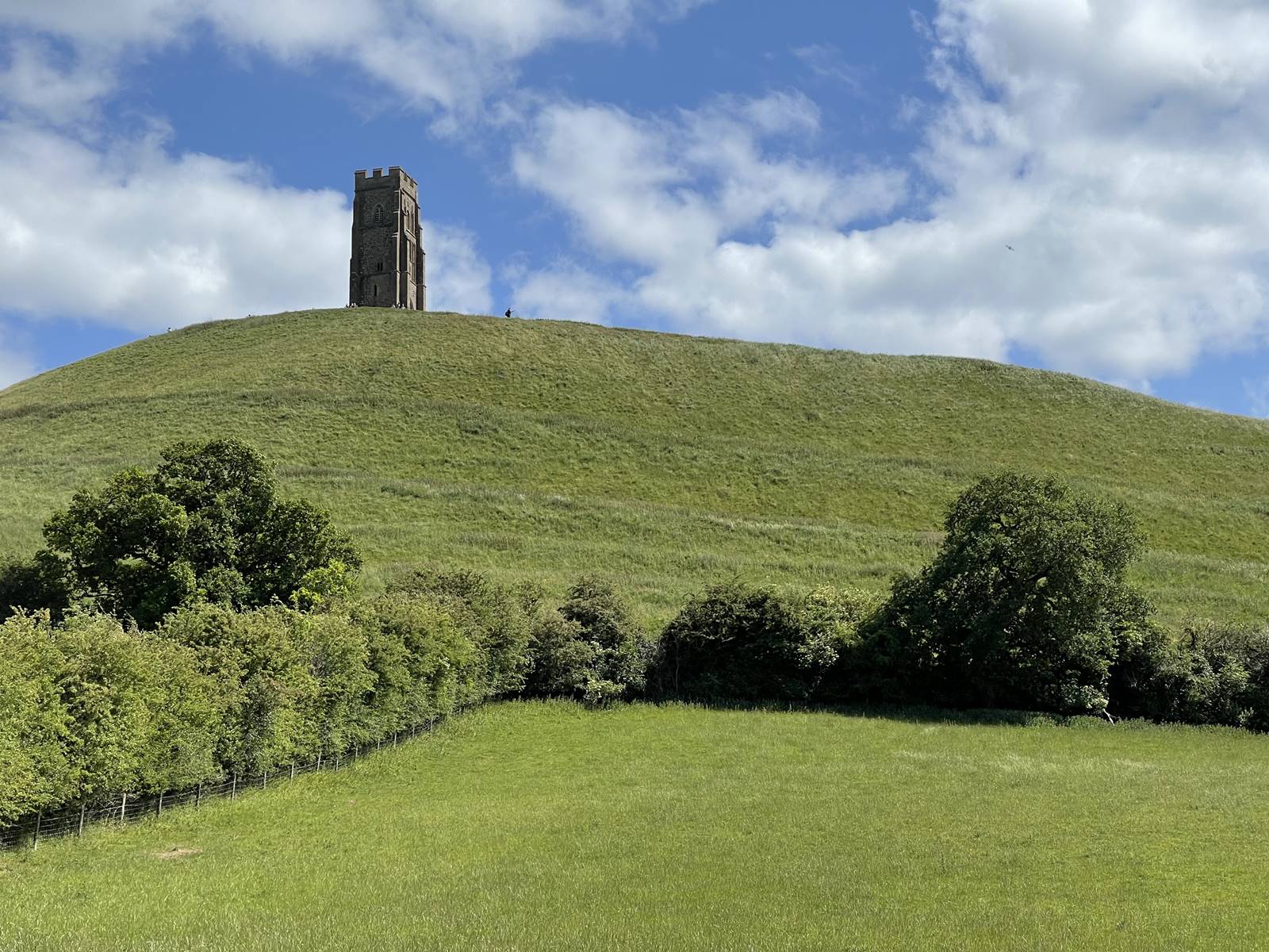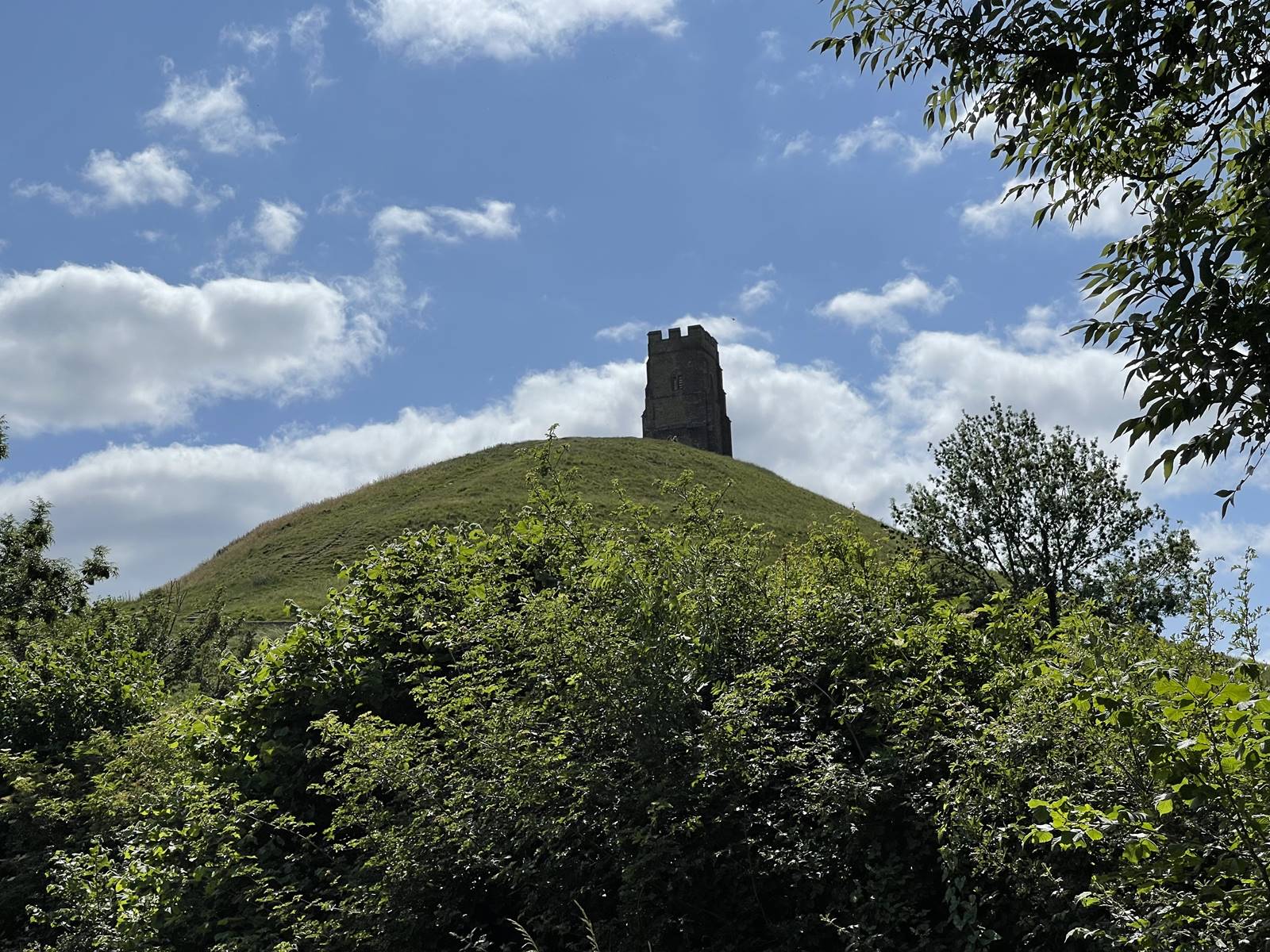 Dressée à l’Est de la ville, la silhouette de Glastonbury Tor est visible de toute la région. Tor est un mot qui dérive du vieil anglais ‘torr’ qui signifie butte rocheuse. Les étroites terrasses tracées sur les coteaux escarpés de la colline datent du Moyen Age. La vue depuis le sommet qui culmine à 158 mètres au dessus du niveau de la mer offre un panorama à 360 degrés. Par temps clair, il est possible de voir trois comtés, le Somerset, le Dorset et le Wiltshire ainsi que le canal de Bristol. Les ruines de l’abbaye de Glastonbury qui fut l’un des monastères les plus fortunés d’Angleterre sont visibles de la colline.