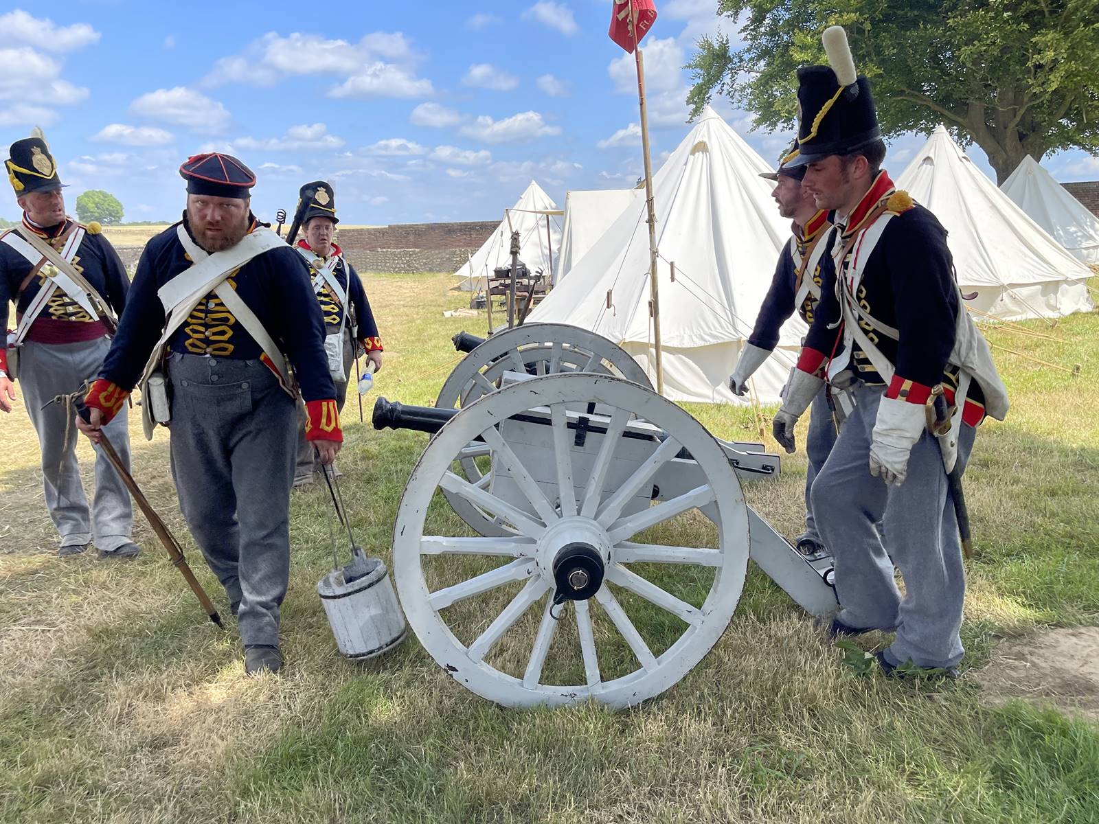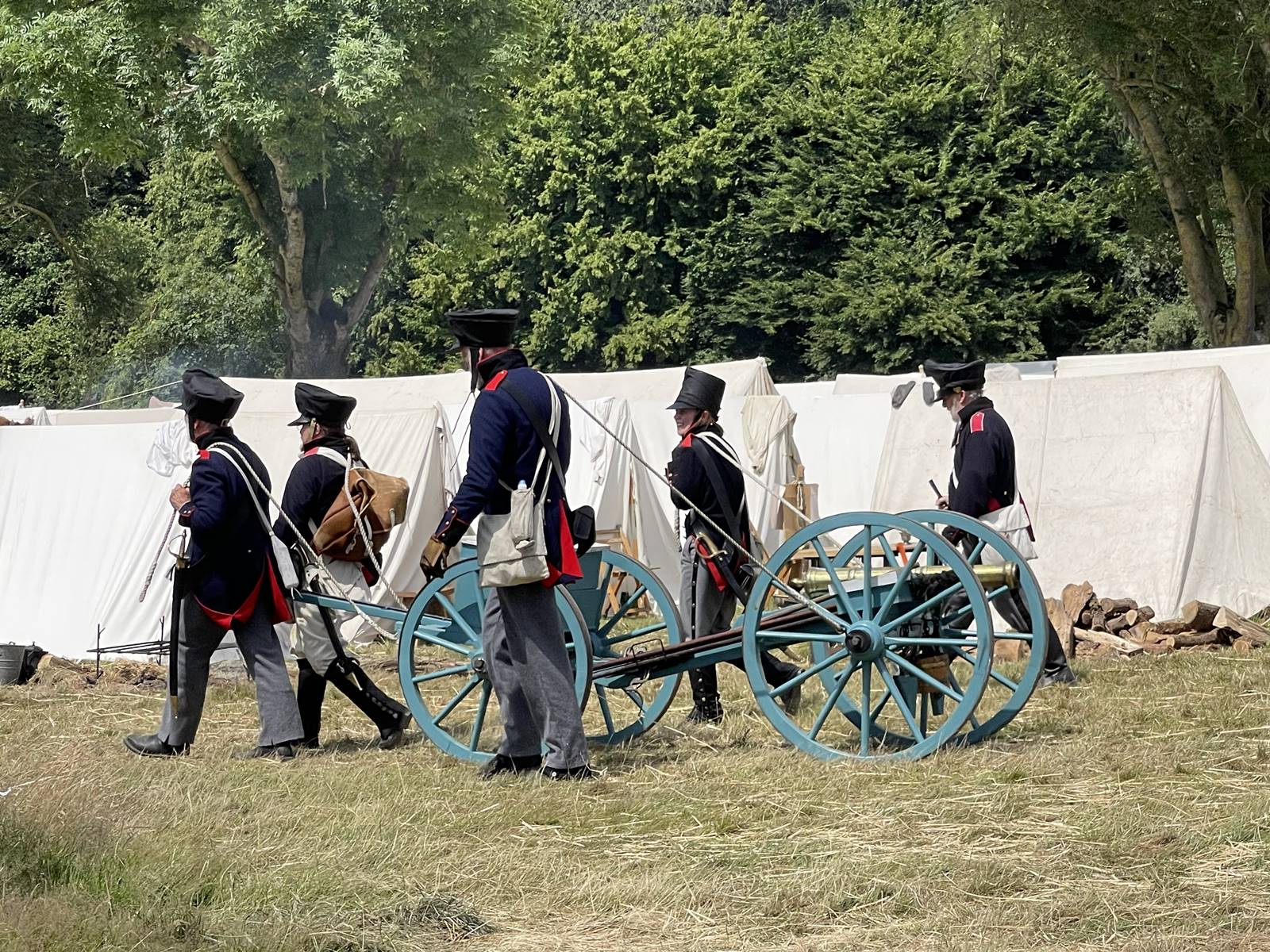 Lors de la reconstitution de la Bataille de Waterloo, visite du bivouac des Alliés à la Ferme d’Hougoumont.