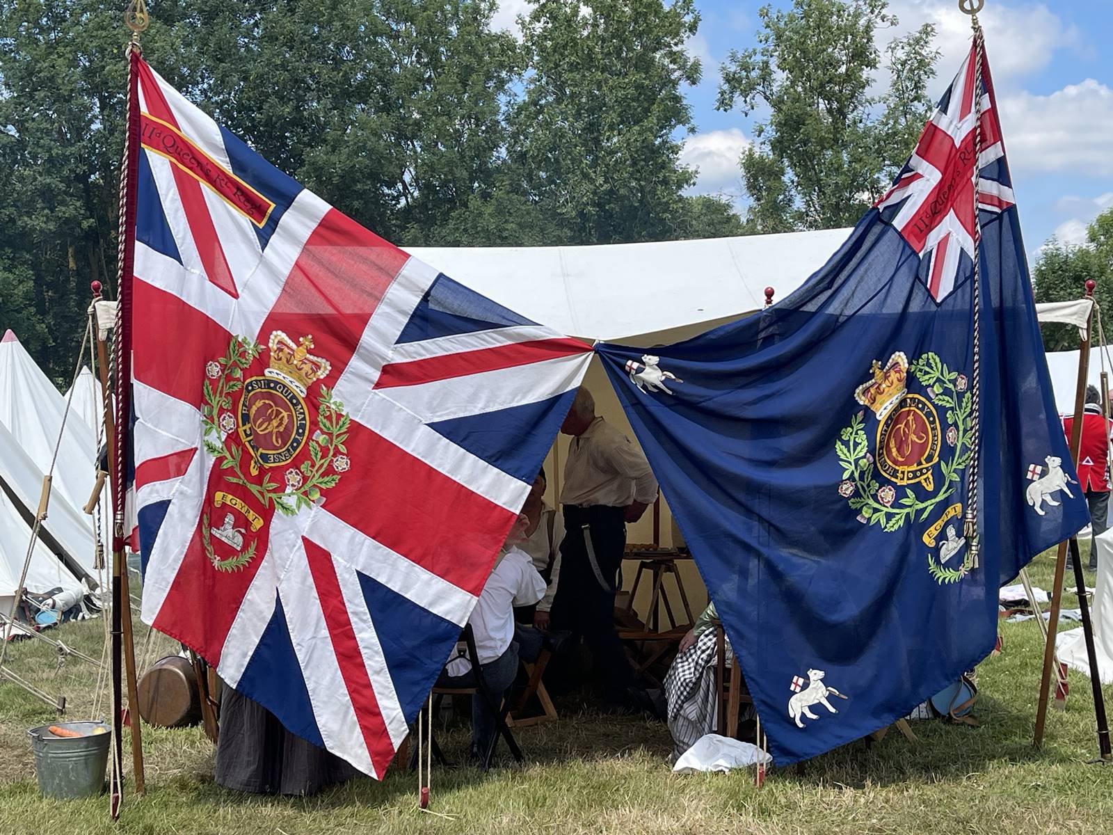 Lien mystique entre le régiment et son souverain, le drapeau servait de point de ralliement sur le champ de bataille. Dans l’armée anglaise, chaque régiment possédait deux emblèmes: un Union Jack comme l’étendard du Roi et un autre aux couleurs du régiment. Ce symbole devait être particulièrement protégé lors de la bataille et sa garde était un honneur pour ceux qui en avaient la charge.