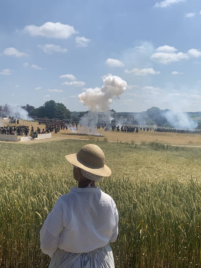 En juin 2025, Waterloo a commémoré le 210e anniversaire de la bataille avec la plus grande reconstitution organisée depuis le bicentenaire de 2015. Plus de 2000 reconstitueurs en uniformes d’époque, 100 chevaux et 25 canons nous ont fait revivre ce qu’à dû être la réalité des combats des troupes alliées et françaises avant la défaite de Napoléon.