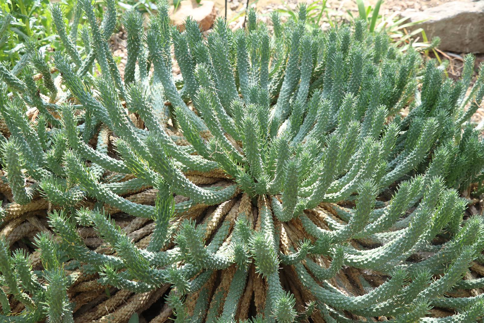 La strate arbustive rassemble genévrier, romarin, bruyère arborescente, pelargonium, ciste, myrte, laurier, pistachier, caroubier et arbousier. Ces plantes ont souvent des feuilles coriaces, épineuses ou persistantes permettant de lutter contre la transpiration excessive de l’été. Les plantes succulentes sont représentées par quelques euphorbes, cactus et agaves d’origine américaine.