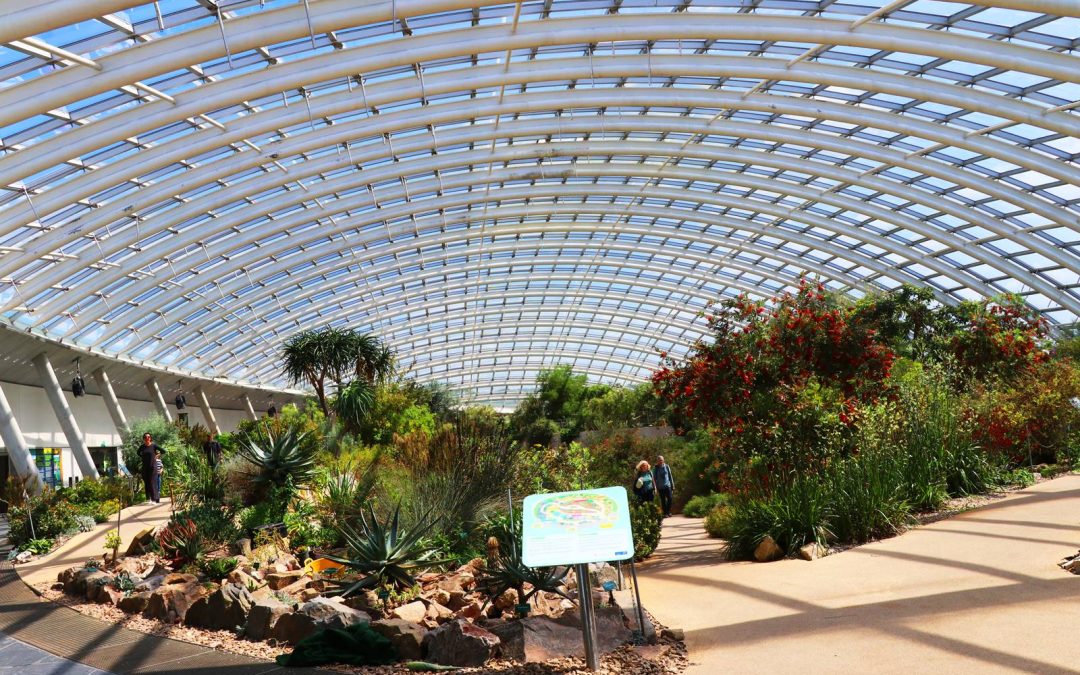 La serre tempérée du Jardin botanique national du Pays de Galles abrite des plantes les plus menacées de la planète provenant de six régions de type méditerranéen, dans le bassin méditerranéen mais aussi en Californie, îles Canaries, Chili, sud de l’Australie et Afrique du Sud. Ces régions ne couvrent que 2% de la surface de la terre mais elles abritent plus de 20% de toutes les espèces végétales du monde.