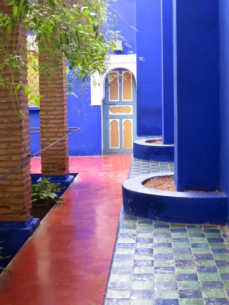 Le Jardin Majorelle est un lieu unique en raison de l’intensité de la palette utilisée tant pour la flore que pour l’architecture. Au delà des camaïeux de vert de la végétation, Jacques Majorelle introduit dans son jardin de la couleur. Il ose le bleu pour les kiosques et les allées, les jaune, vert, orange, rouge pour la ferronnerie, les pots fleuris et les jarres qu’il dispose un peu partout comme des natures mortes tandis que les bougainvillées vermillon et fuchsia couvrent les murs et les treilles. Ce jeu de couleurs, à la fois hardi et subtil, révèle le goût de son créateur. Ainsi, son jardin est devenu un jardin peint.