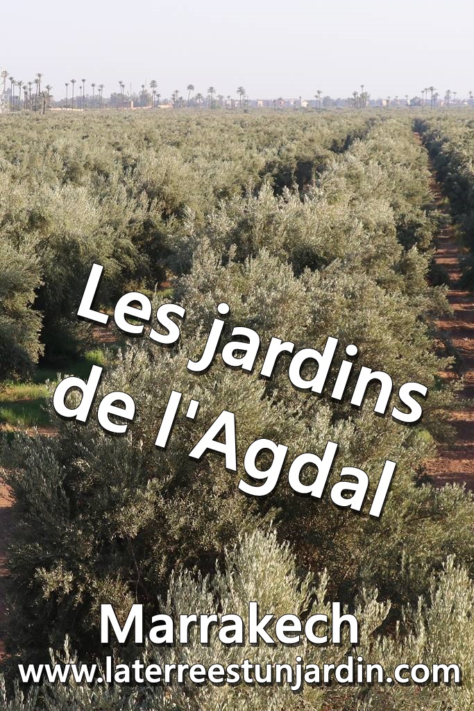 Les jardins de l’Agdal s’étendent sur un plan légèrement incliné dominant la ville. Les jardins sont divisés en enclos jardinés de forme rectangulaire. Le premier enclos, celui de l’orangeraie, est placé près du grand bassin afin de profiter d’une eau rare et convoitée. Les agrumes représentaient une nouveauté botanique pour l’époque. L’oranger d’origine chinoise et le citronnier d’origine indienne n’ont été introduits en Europe qu’au 12e siècle via le Maroc et l’Andalousie. Le second enclos était le plus étendu. Il accueillait une immense oliveraie. Plus loin, s’étendaient des vignobles.
