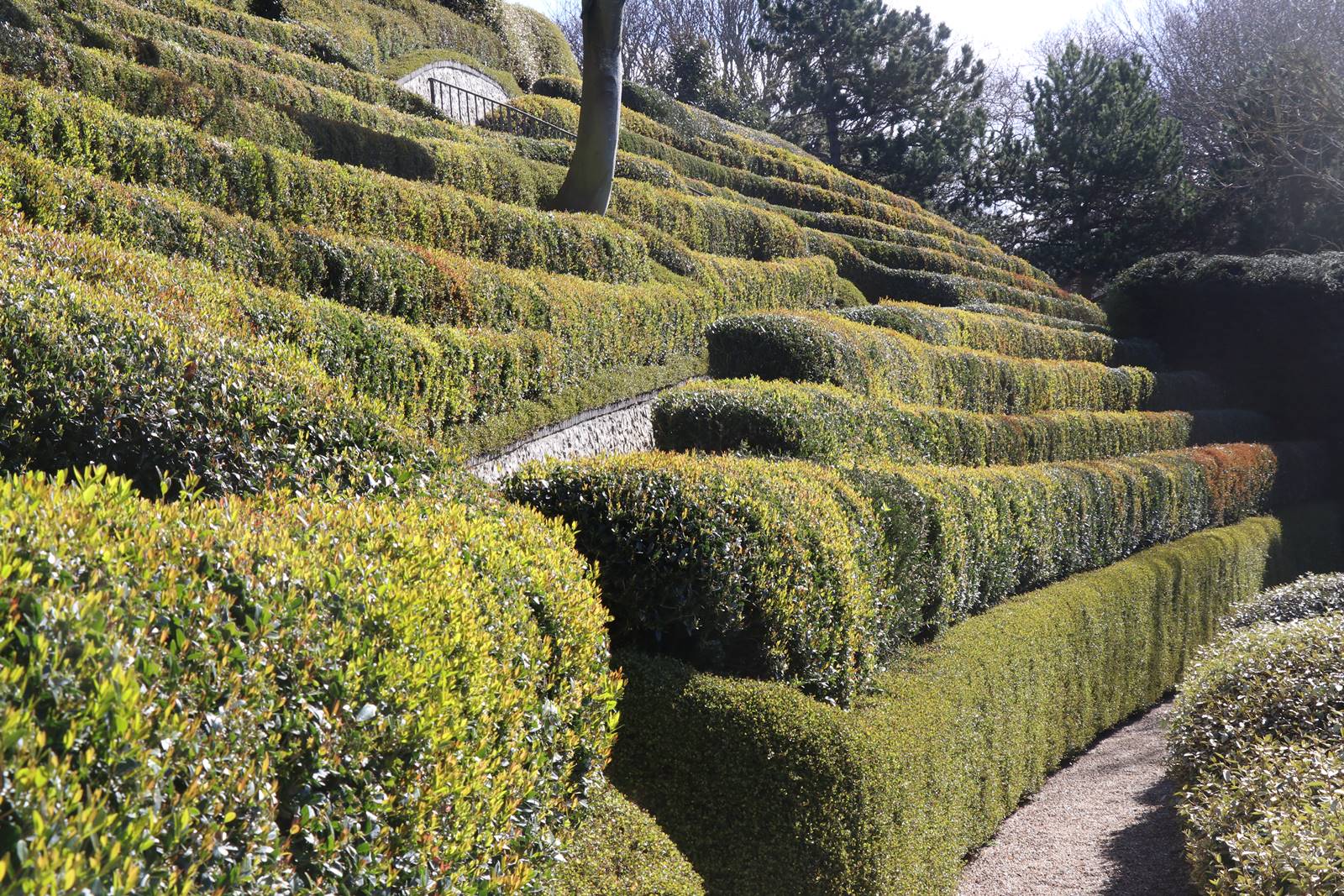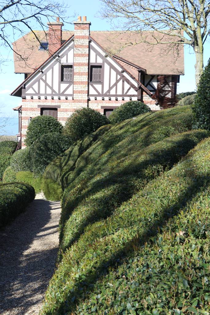 Les compositions de végétaux taillés font des vagues ondulantes, rappelant au visiteur les marées de la Manche.