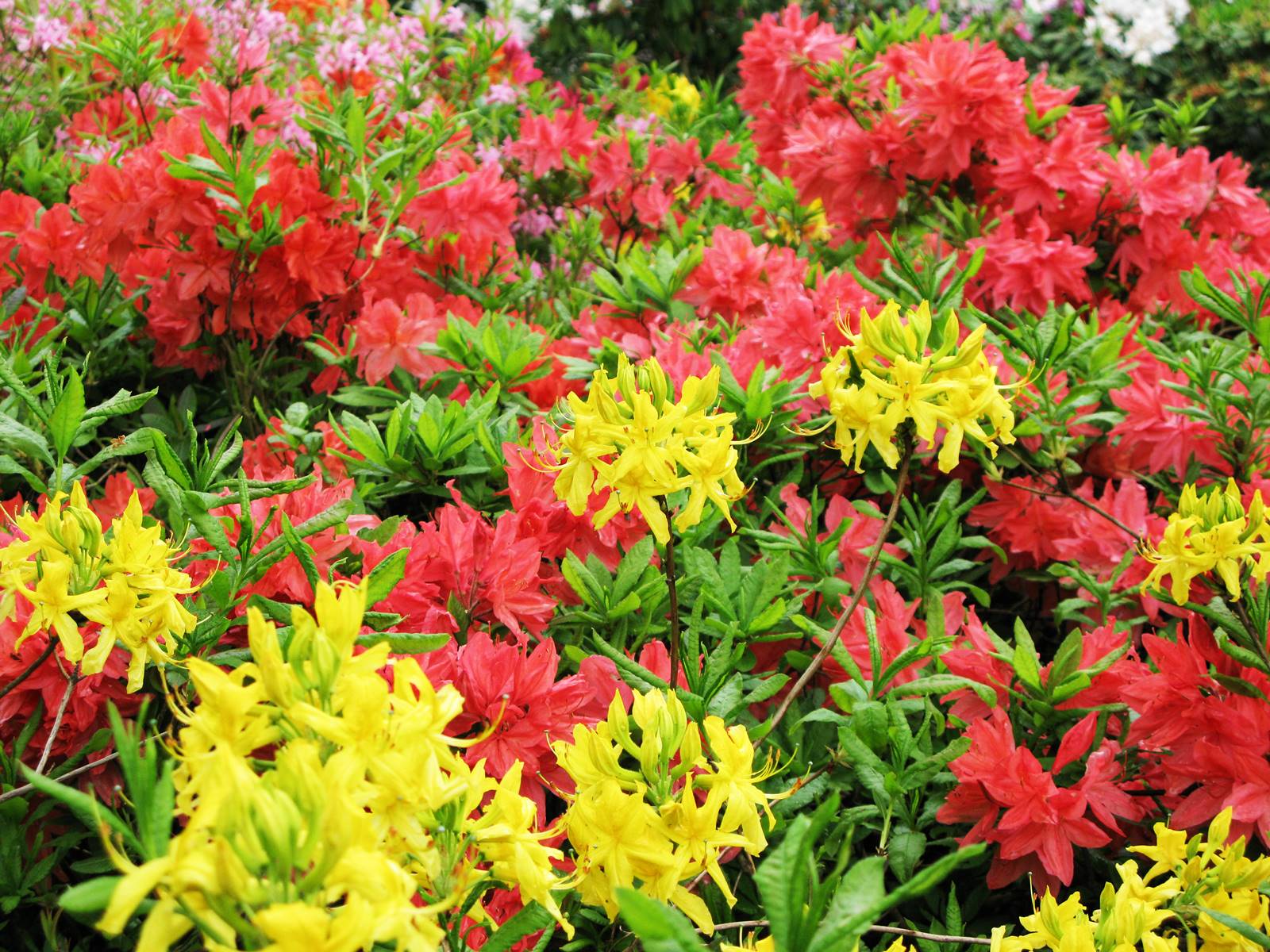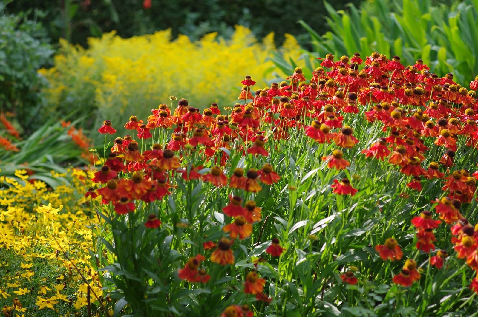 Dans un jardin, les couleurs voisines ou presque voisines sur le disque des couleurs sont en harmonie entre elles. Ainsi le rouge, l’orange et le jaune s’associent en harmonie. Un peu de mauve, un peu de rose doux et une touche de blanc font un pastel harmonieux. On peut aussi introduire deux couleurs complémentaires, le jaune et le mauve par exemple et introduire une troisième couleur proche, le rose violet ou le bleu indigo. Les fleurs jaunes serviront de faire valoir aux autres fleurs et l’ensemble sera harmonieux.