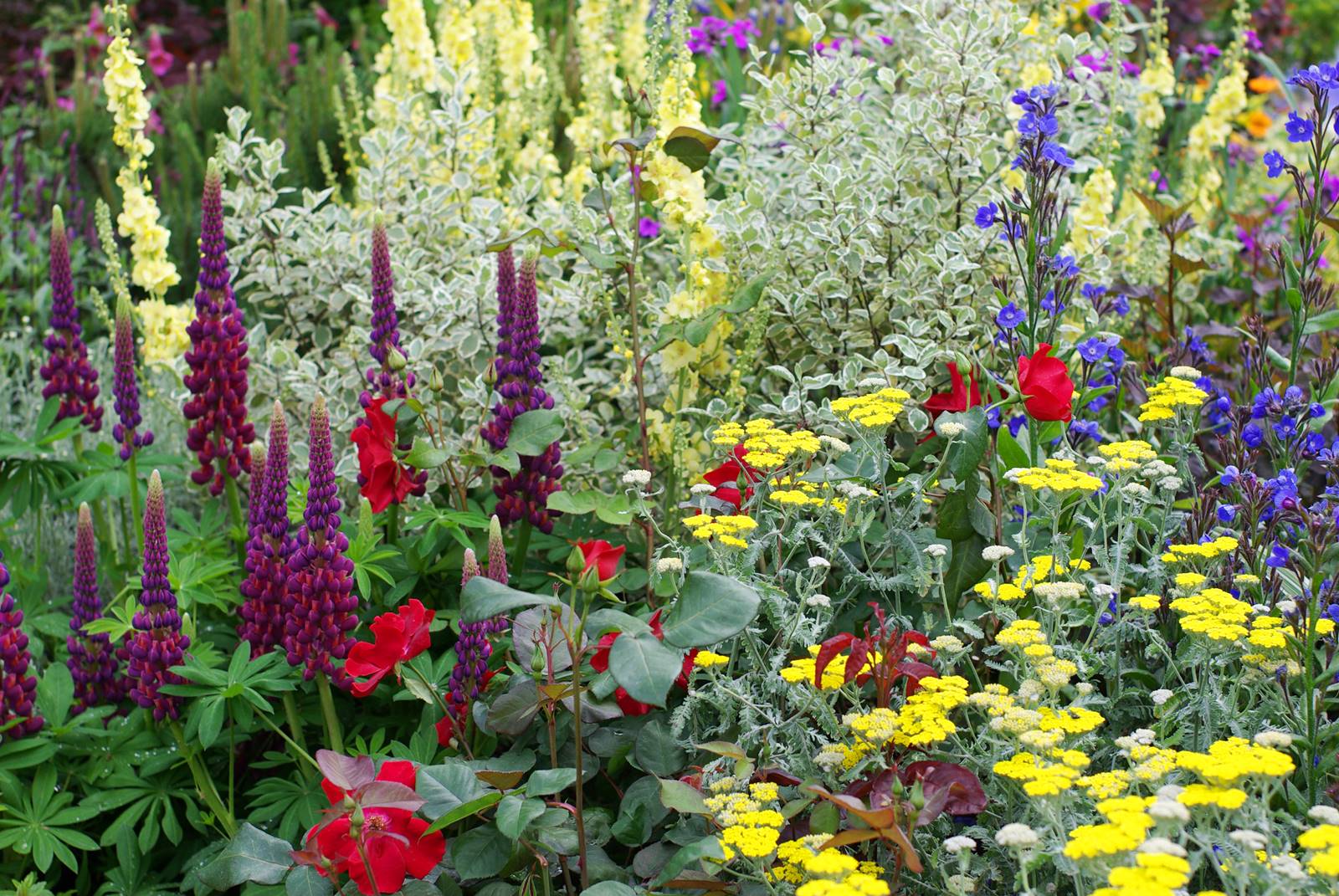 Dans le cercle chromatique, chaque couleur primaire est opposée à une couleur secondaire. Par exemple, le rouge et le vert sont des couleurs complémentaires tout comme le bleu et l’orangé, le jaune et le mauve. Placées côte à côte, ces couleurs opposées sur le cercle chromatique ont tendance à se renforcer mutuellement pour créer des contrastes. Pour tempérer le contraste dans un jardin, la couleur la plus forte doit être noyée dans une masse de couleurs plus calmes.