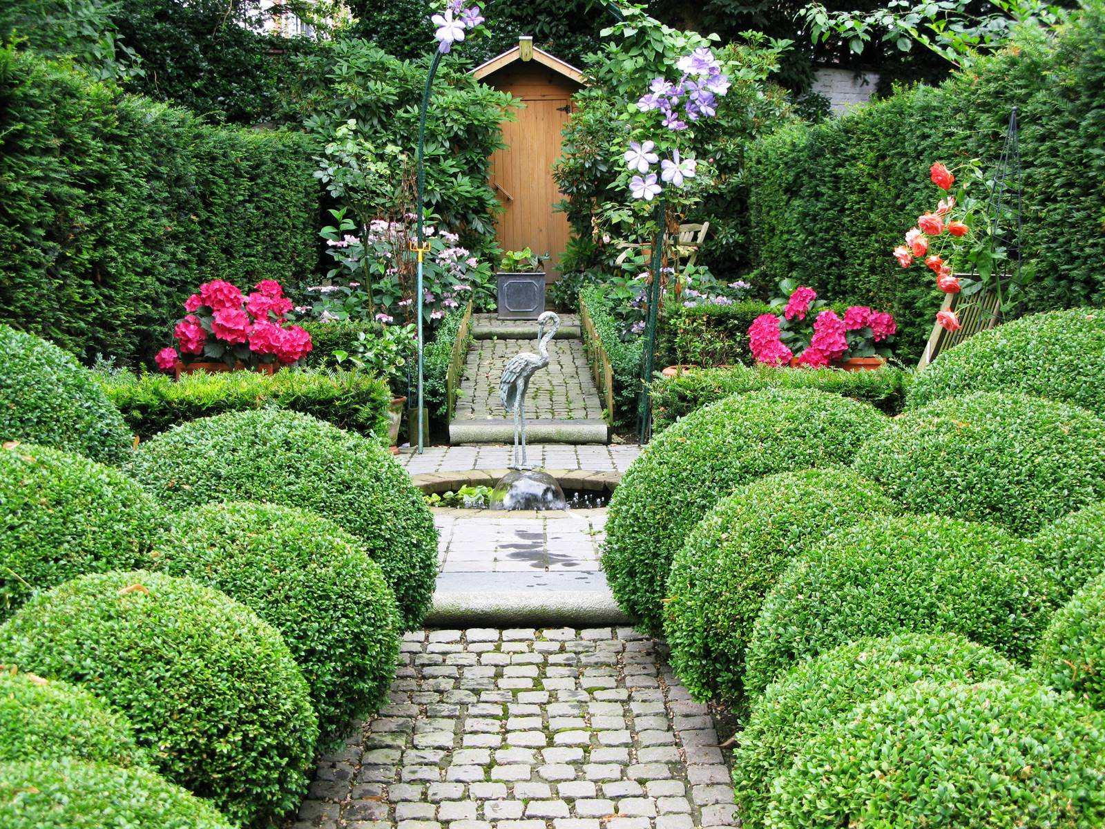Rendez-vous dans la rubrique Végétaux, Arbres et arbustes, pour voir mes reportages sur le Buis, pyrales et champignons et, l‘Ilex crenata, sur les Topiaires qui remplacent le buis et sur la Pépinière Karel Goossens, et dans la rubrique Jardins, Belgique, mon reportage sur les Buis du Jardin du Château de Court-St-Etienne, ou cliquez sur les liens.