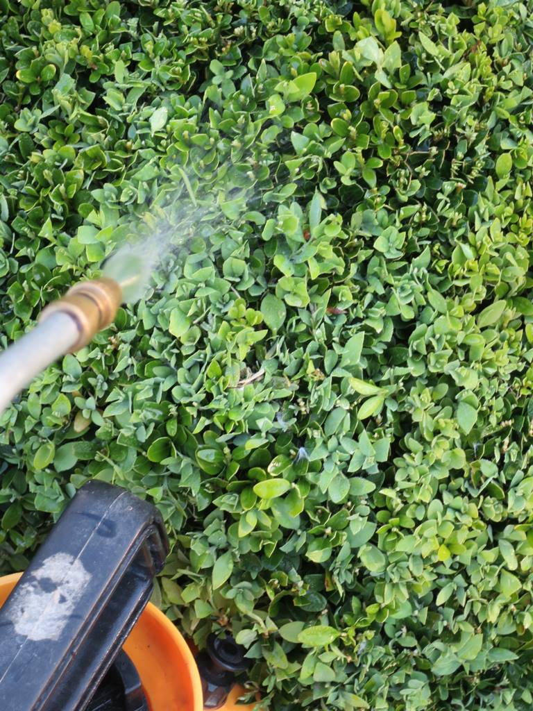 Le traitement préventif contre la pyrale du buis n’est pas efficace. Mais si le papillon est déjà dans votre région, il y a de fortes chances qu’il arrive chez vous. Inspectez régulièrement vos buis pour voir si les feuilles ne sont pas grignotées ou blanches et transparentes et si vous voyez des chenilles. Alors il faut traiter immédiatement! Karel Goossens, horticulteur spécialiste du buis et du taxus, conseille de pulvériser le Bacillus thuringiensis sur vos buis selon le calendrier suivant. La première année, une dose en avril-mai permet d’éliminer les chenilles qui ont hiverné dans la plante. Ensuite, il faut procéder à une pulvérisation sur le feuillage du buis du 10 au 15 juillet car les attaques de la pyrale atteignent un pic à cette époque. Puis une pulvérisation du 10 au 15 août, puis du 10 au 15 septembre. Une dernière pulvérisation mi octobre va permettre de détruite les chenilles avant leur stade hivernal. (voir mon reportage sur la pépinière Karel Goosens)