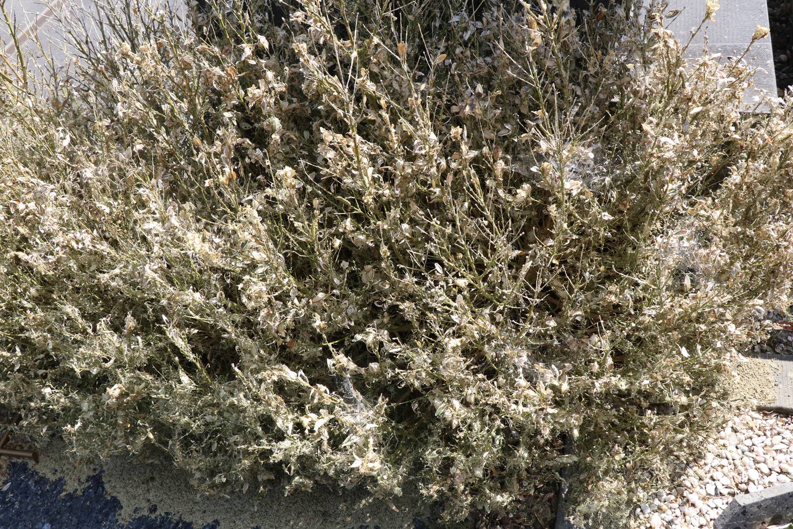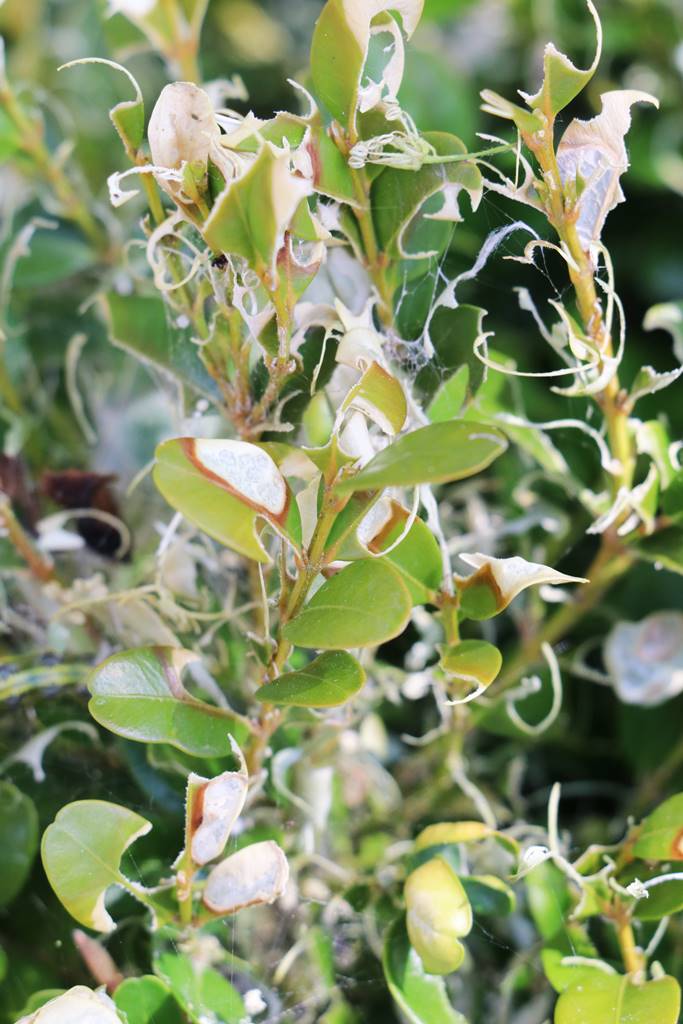 Il faut bien observer ses buis dès le début du mois de mars pour identifier les éventuelles larves qui se trouvent généralement entre deux feuilles collées. Les chenilles tissent des toiles autour des plantes infestées et laissent sur le sol de nombreuses déjections vert foncé ou brunes. Les feuilles deviennent blanches et transparentes ou elles sont carrément grignotées par les chenilles.