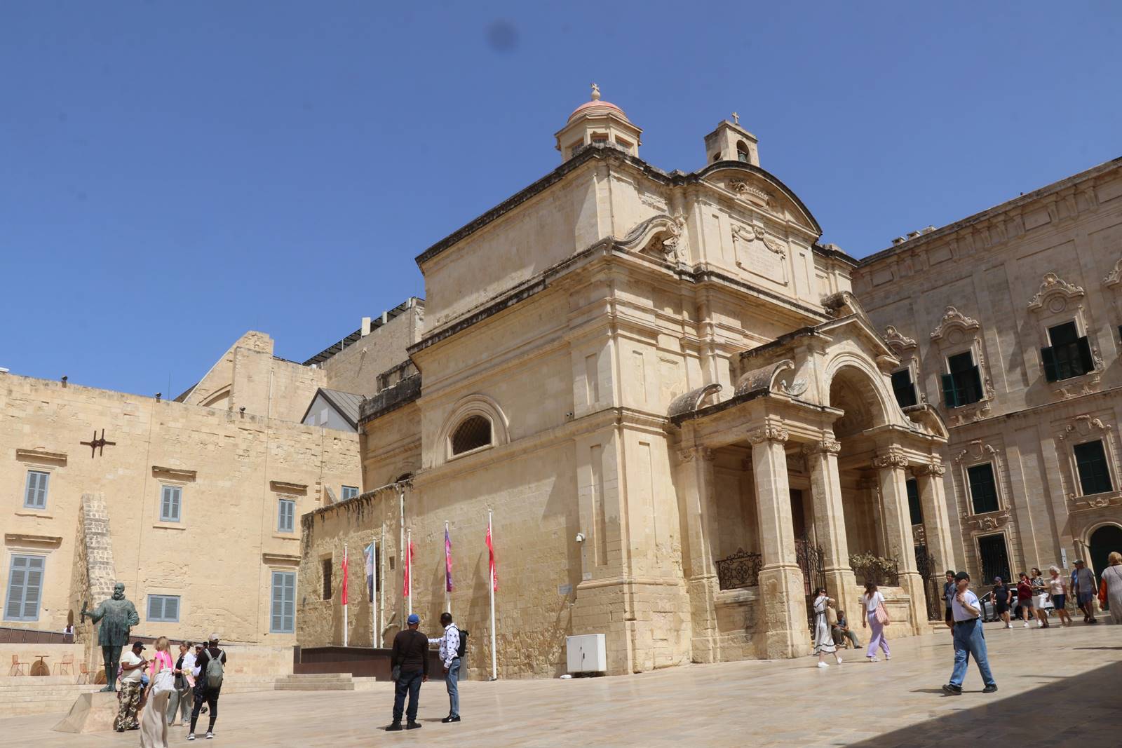 A côté de l’église Sainte-Catherine, un monument est dédié au Grand Maître fondateur de la cité. Jean de Valette est représenté avec son armure. Sa main droite tient le plan de la ville et la main gauche est posée sur l’épée de la victoire.