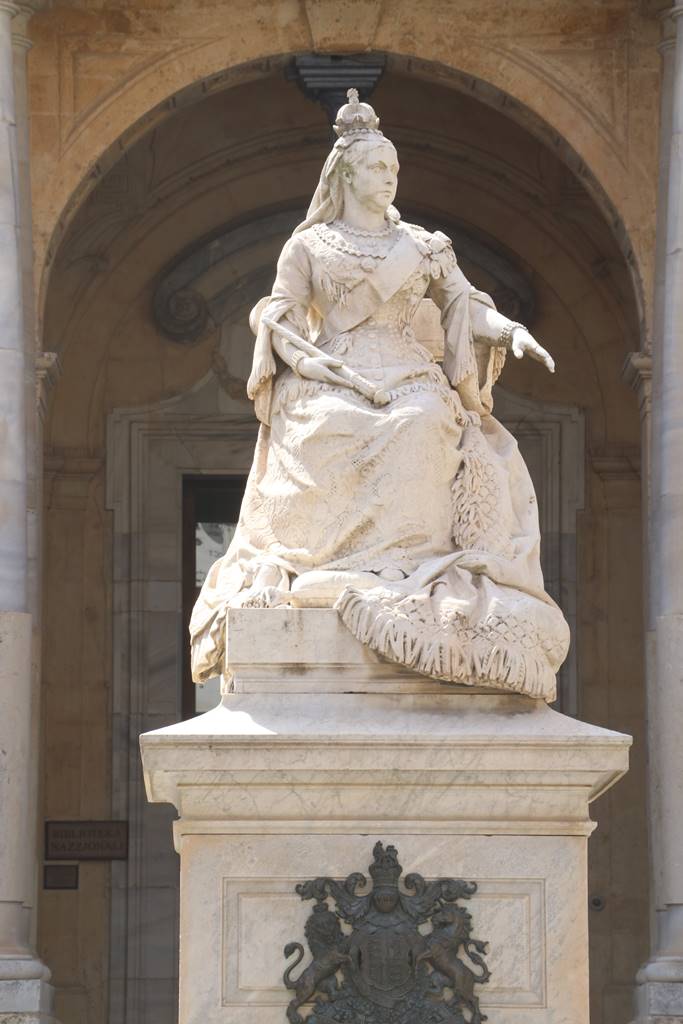 Une statue de la reine Victoria trône devant la Bibliothèque nationale de Malte, rappelant la domination britannique de 1814 à 1962.