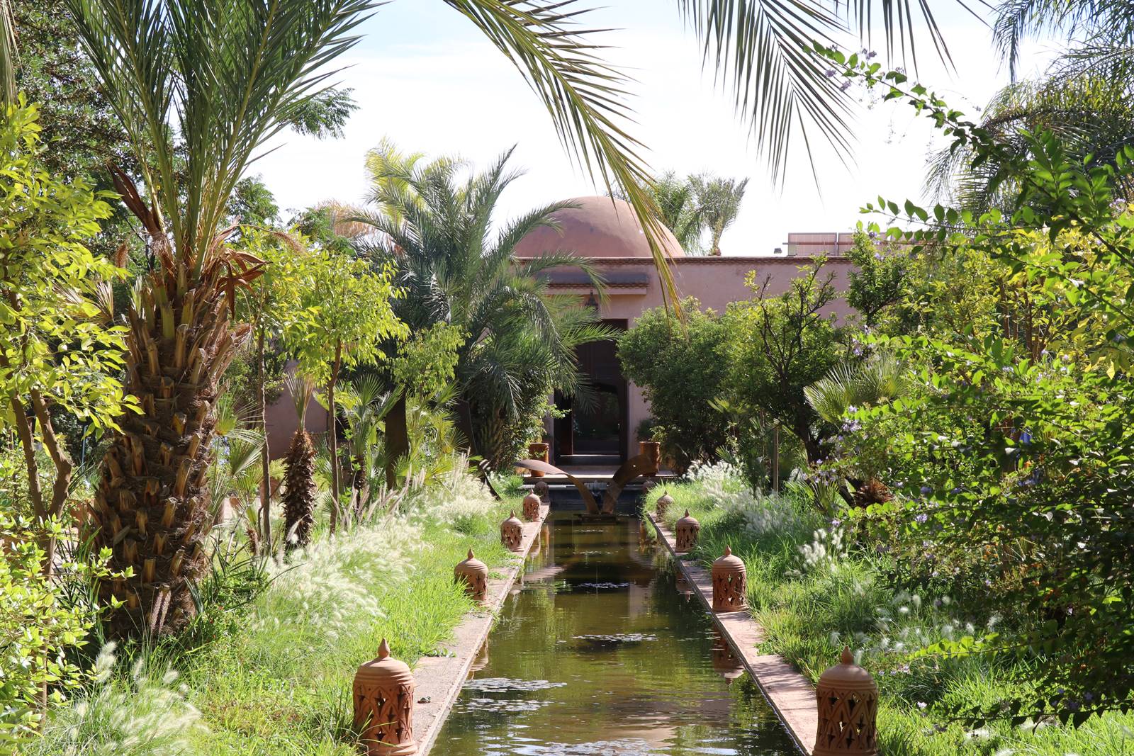 Cette oasis de verdure est composée de trois espaces distincts. Un jardin ancré dans la tradition arabo-andalouse s’étend le long d’un bassin bordé d’agrumes et de plantes parfumées. Le jardin de sculptures est animé de pavillons de repos et de sculptures d’art moderne. Entouré de hauts murs et écrasé de soleil, le jardin sec est peuplé de cactus et de plantes succulentes. Un jardin en dehors des sentiers battus qui mérite la visite. (voir mon reportage sur le Musée de la Palmeraie)