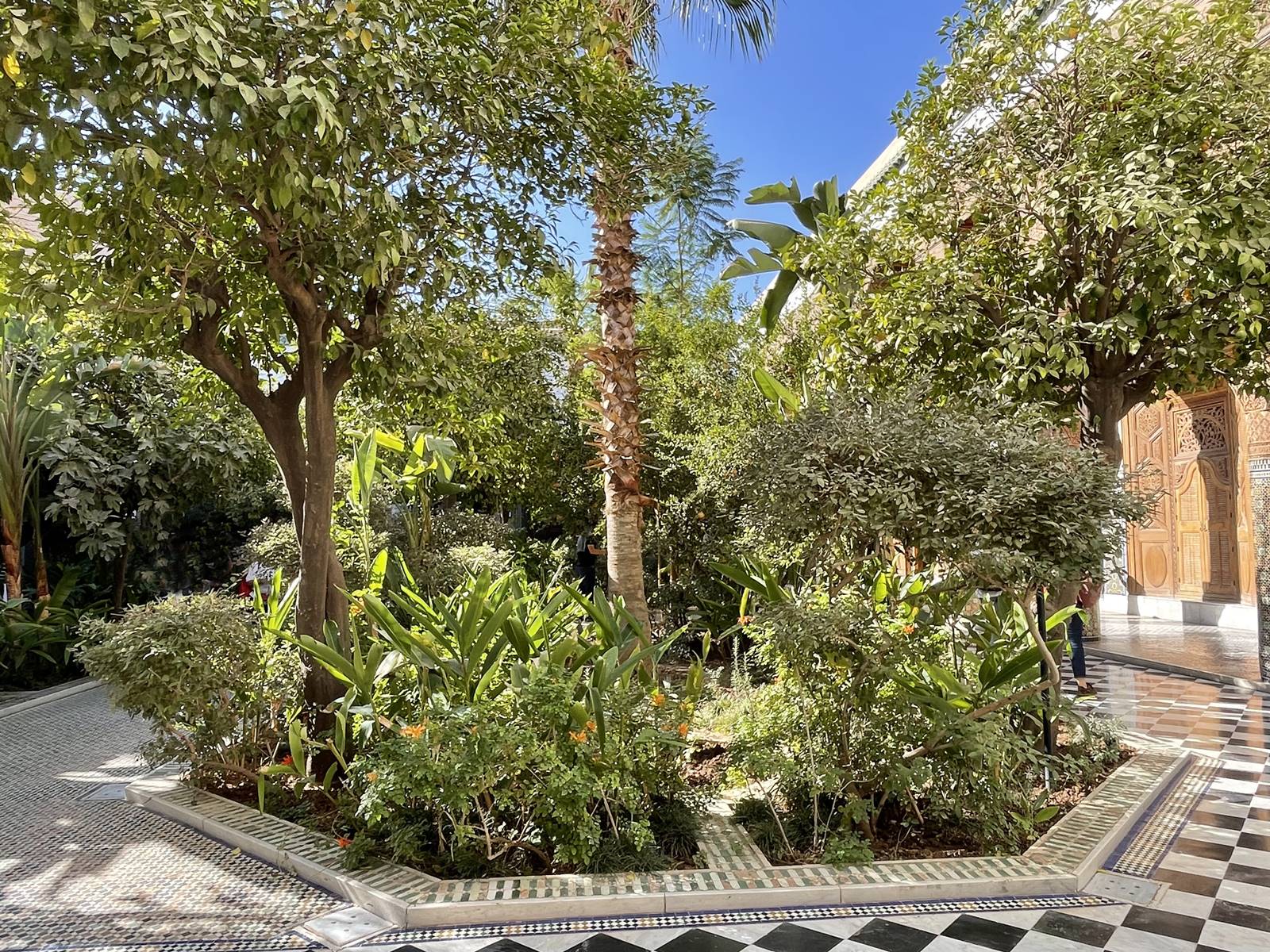 Véritable havre de fraîcheur, le Jardin Secret est formé de deux espaces. Le premier est un jardin exotique luxuriant. Organisé autour d’un canal étroit, il abrite des plantes provenant de différentes parties du monde. Plus grand et plus sobre que le premier jardin, le jardin islamique est une métaphore du verger du paradis. Son organisation en quatre parties rappelle la description du jardin sacré faite par le Coran. Un véritable jardin d’Eden. (voir mon reportage sur le Jardin Secret)