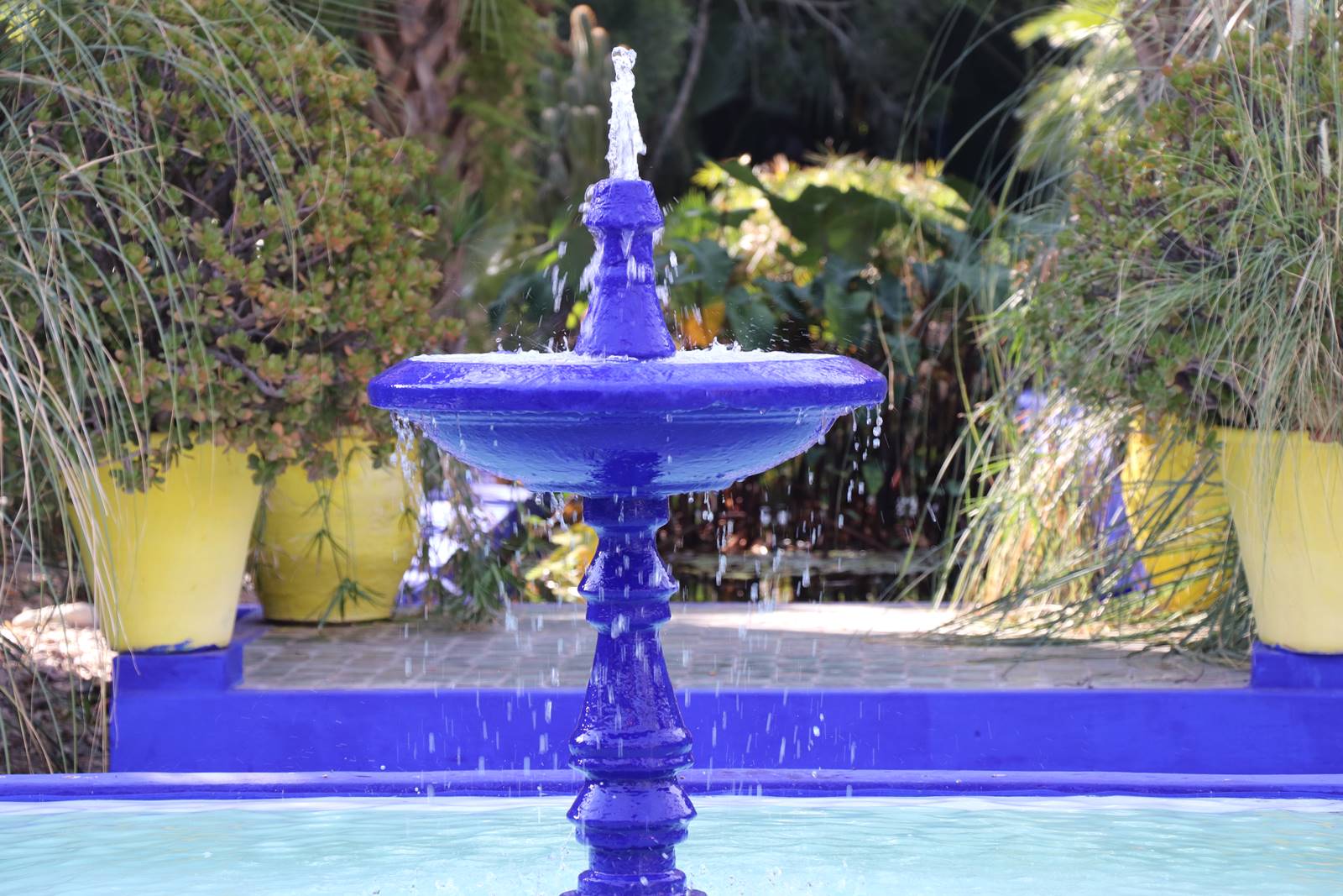 Au fil du temps, Majorelle introduit des agaves, crassulacées et divers cactus. Il dispose un peu partout des pots fleuris et des jarres colorés de jaune, orange, vert, rouge et surtout de bleu, le fameux bleu outre-mer lumineux connu sous le nom de ‘Bleu Majorelle’. Sauvé il y a cinquante ans par Yves Saint-Laurent et Pierre Berger, le jardin Majorelle est le plus célèbre des jardins de Marrakech et l’un des plus beaux jardins au monde. (voir mon reportage sur le Jardin Majorelle)